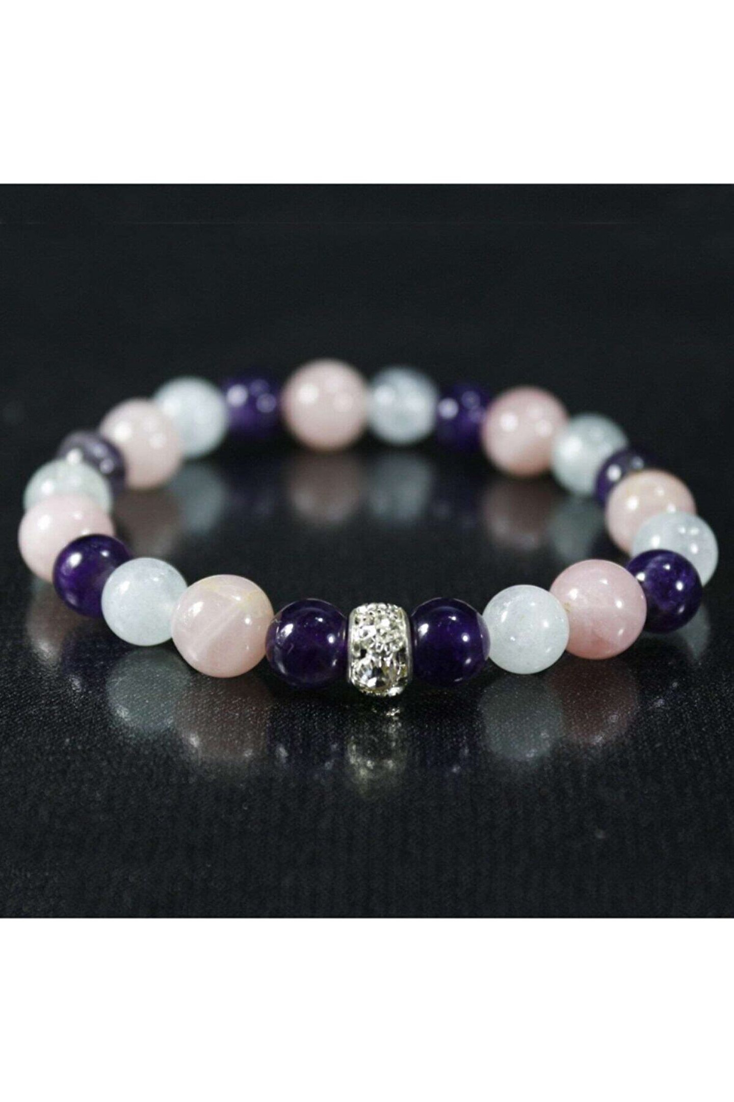 DOĞAL TAŞ CENNETİ Işıltılı Karma Doğal Taş Bileklik | Ametist | Akuamarin | Pembe Kuvars