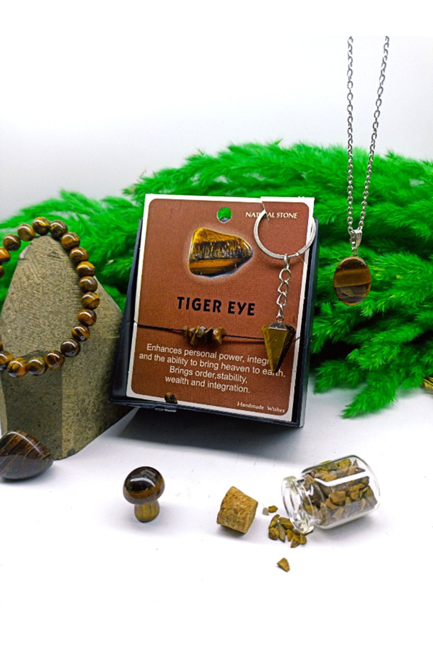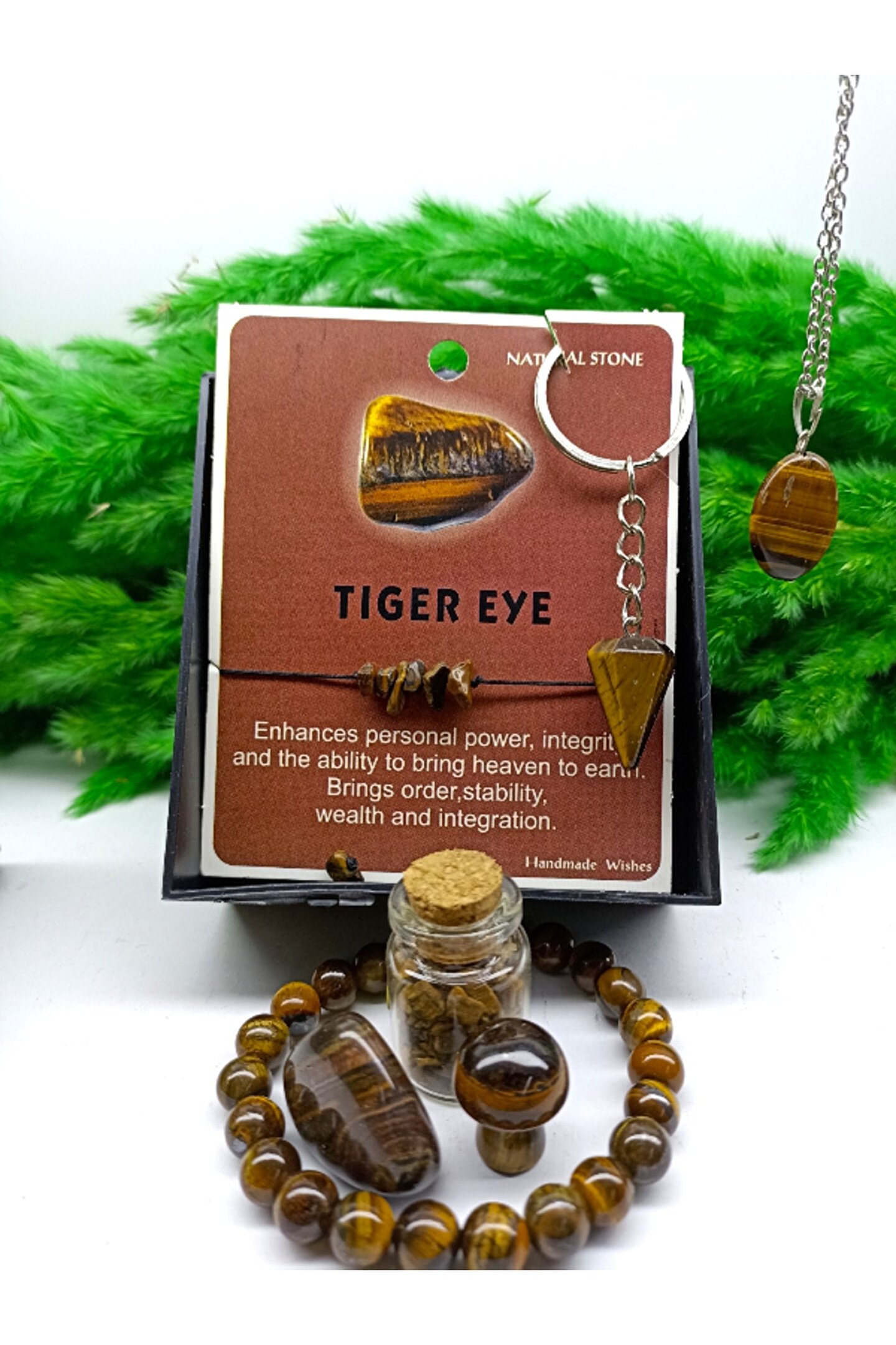 Beddualara ve lanetler karşı koruyucu bir taştır. ; Cesareti arttırır ve korkularınızı yenmenize yardım eder. ; Önsezi yeteneğinizi güçlendirir. ; Zihinsel hastalıkların ve kişilik bozukluklarının tedavisinde faydalıdır. ; Sahiplenme duygusunu güçlendirir. ; Depresyonu yok edip ruh hallerini yükseltir. ; Daralma hissiyatını ortadan kaldırır. ; İnsomnia için faydalıdır. ; Sinirsel spazmları ve baş ağrısını hafifletir. ; Kişinin enerjisini dengeler. ; İÇİNDEKİLER;1 ADET KAPLANGÖZÜ BİLEKLİK-1 ADET KAPLAN GÖZÜ MANTAR-1 ADET KAPLAN GÖZÜ TIMBIL-1 ADET KAPLAN GÖZÜ KOLYE UCU-1 ADET KAPLAN GÖZÜ ANAHTARLIK-1 ADET KAPLAN GÖZÜ BİLEKLİK MAKREMELİ-1 ADET KAPLAN GÖZÜ TÜP-; ÜRÜN ÖZEL KUTUSUNDA VE BİR ADET HEDİYE KESE İLE GELİCEKTİR... ;