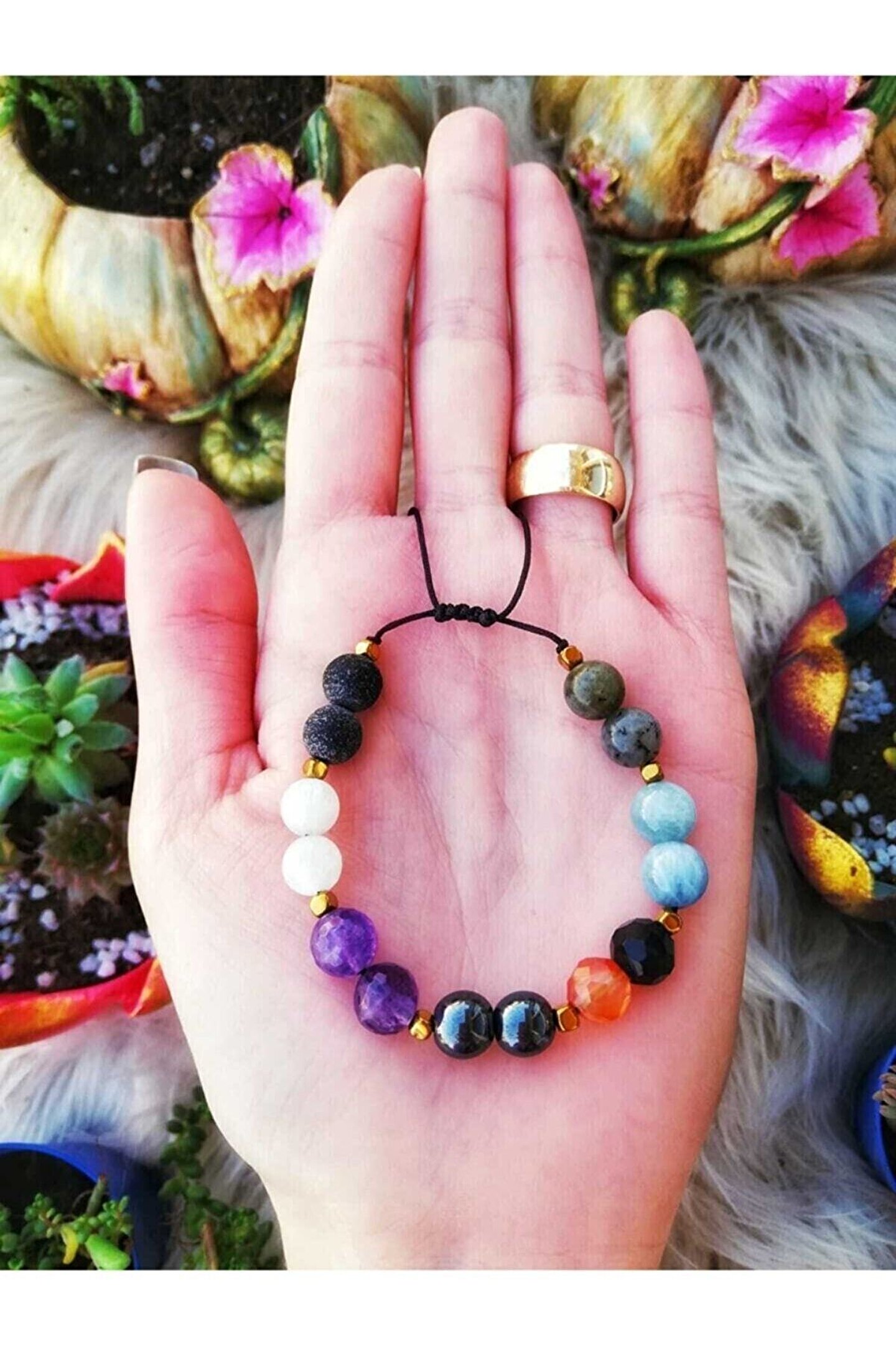 Doğal taş kullanımı sayesinde her bileklik benzersiz ve otantik bir görünüm sunar; Kova burcu doğaltaş bileklik, Kova burcu özelliklerini yansıtan enerjik ve sakinleştirici bir etki sağlar; Doğal taş materyali ile hem şıklığı hem de doğallığı bir arada sunarak, günlük kullanım için idealdir; Kova burcu doğaltaş bileklik, kişisel tarzınıza zarif bir dokunuş ekler ve her türlü kıyafetle uyum sağlar;