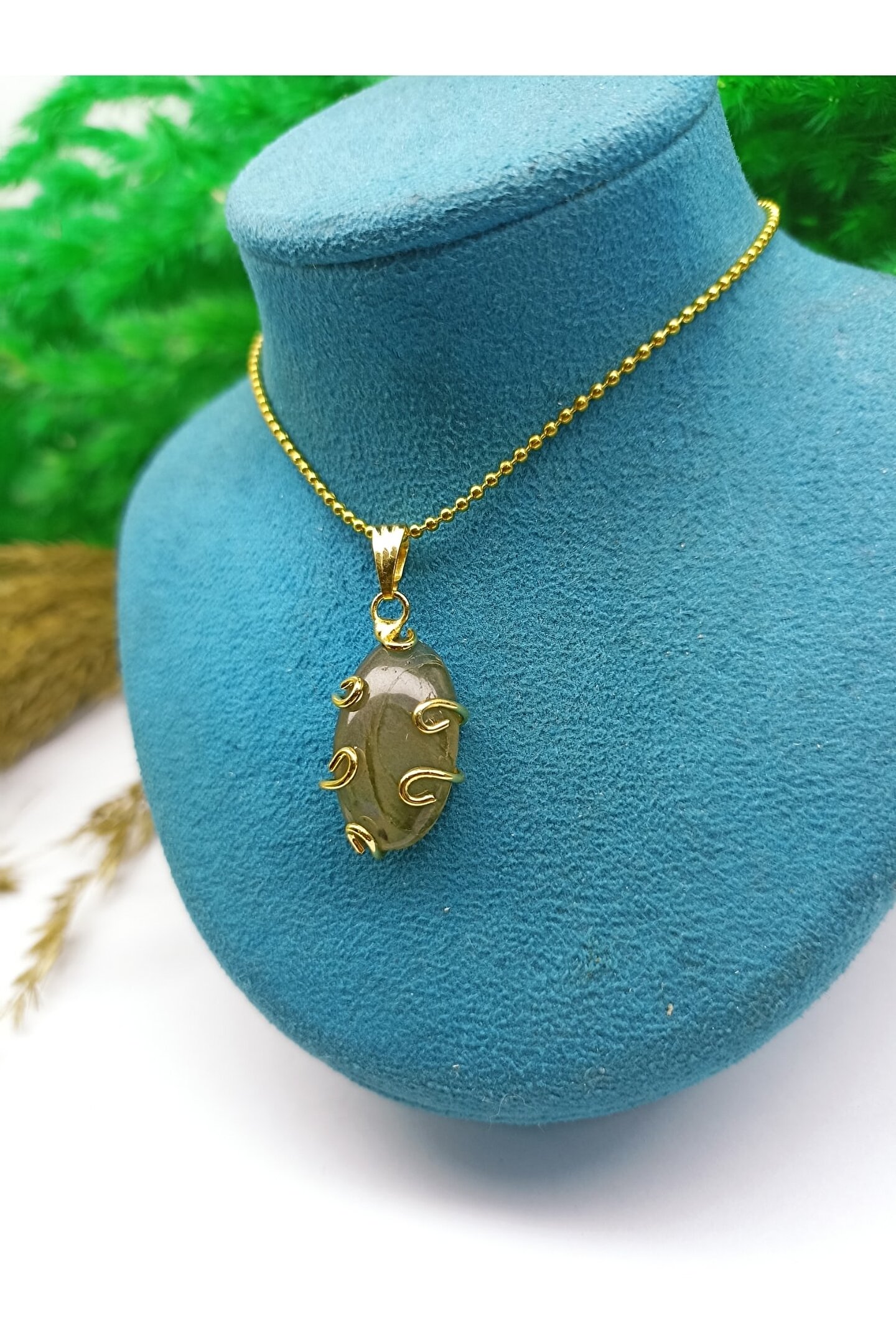 DOĞAL TAŞ CENNETİ Labradorit A Kalite Altın Kaplama Kolye Ucu(sertifikalı)