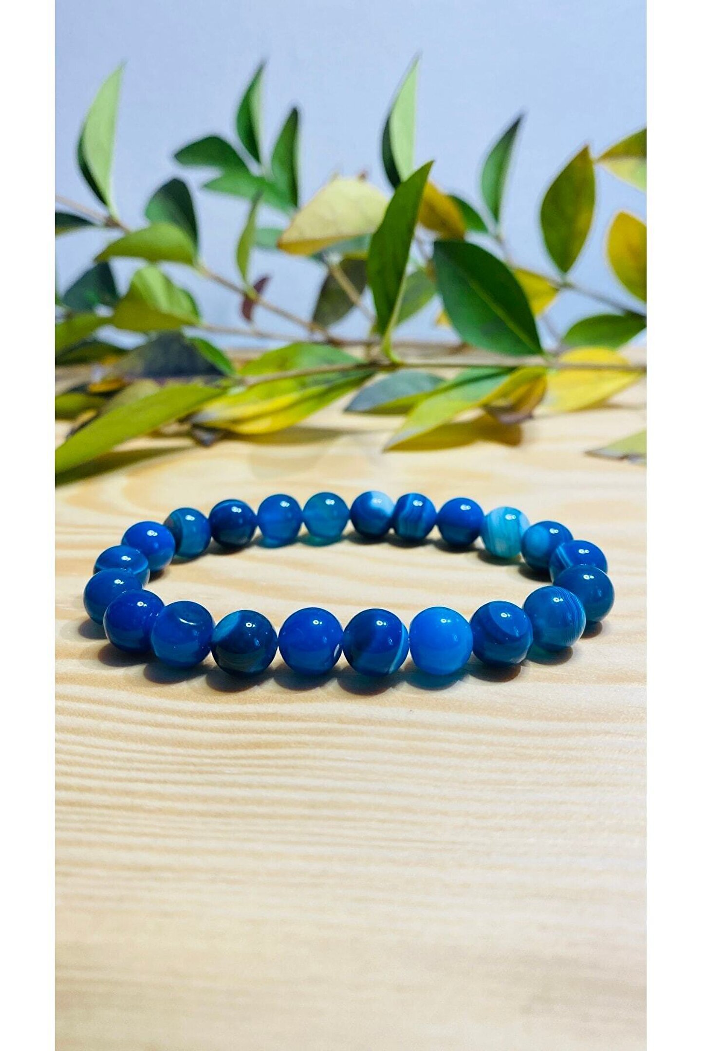 DOĞAL TAŞ CENNETİ Mavi Akik Taşı Unisex Bileklik