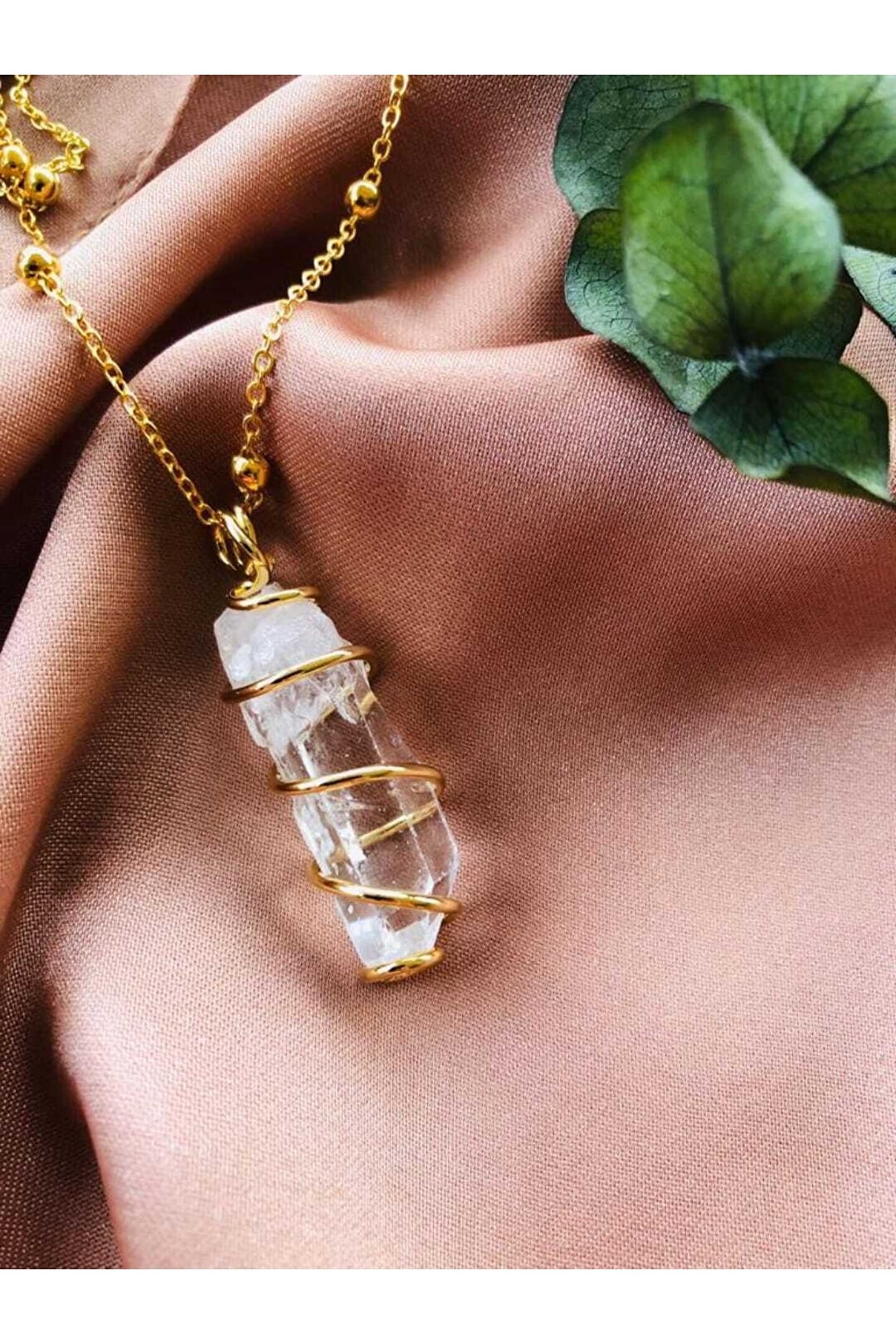 Doğal kristal kuvars taşı ile tasarlanmış, şıklığı ve zarafeti bir arada sunan kolye ucu; Altın kaplama zincir, hem dayanıklılığı hem de estetik görünümü ile dikkat çeker; 47 cm uzunluğundaki zincir, rahat bir kullanım sağlar ve farklı boyuttaki boynuzlara uyum sağlar; Sertifikalı ürün, kalite ve orijinallik konusunda güven verir;