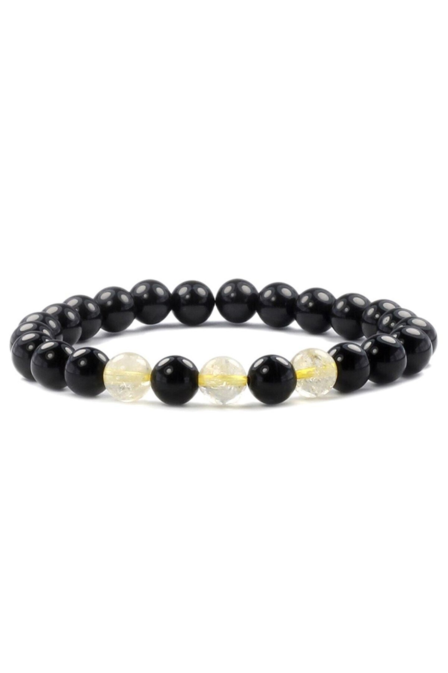 DOĞAL TAŞ CENNETİ Obsidian - Dönüşümlü Sitrin Doğal Taş Bileklik 8 mm