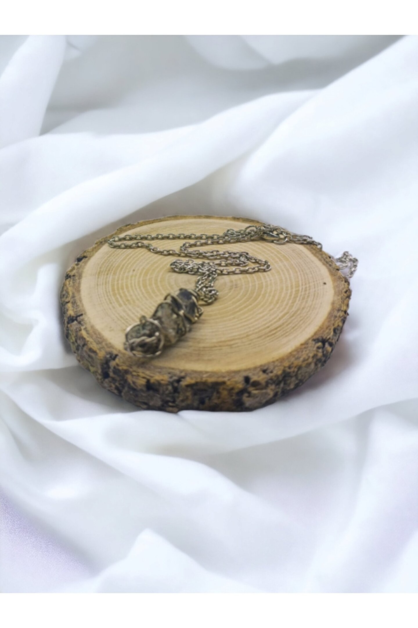 DOĞAL TAŞ CENNETİ PİRİT TAŞI DOĞAL TAŞ KOLYE UCU (SERTİFİKALI)(45CM ZİNCİR )