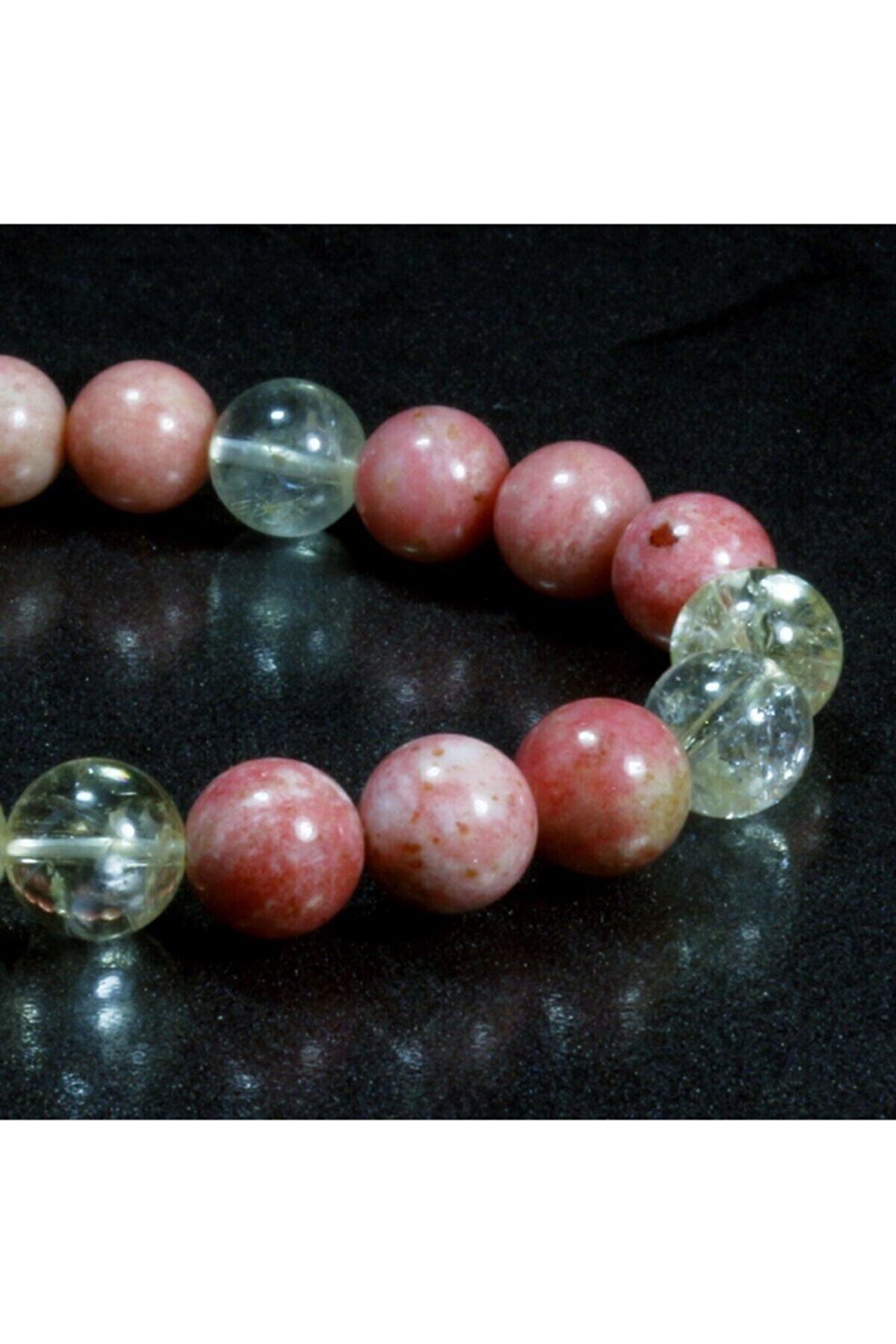 - Doğal taş kullanımı, her bir bilekliğin benzersiz ve otantik bir görünüm kazanmasını sağlar; - Rodonit ve sitrin taşları, bilekliğe zarif bir parlaklık ve renk çeşitliliği katar; - Tuğçe tasarımı, klasik ve zamansız bir stil sunarak her türlü kıyafetle uyum sağlar; - Doğal taşların şık ve göz alıcı renkleri, bilekliğe sofistike bir dokunuş ekler;