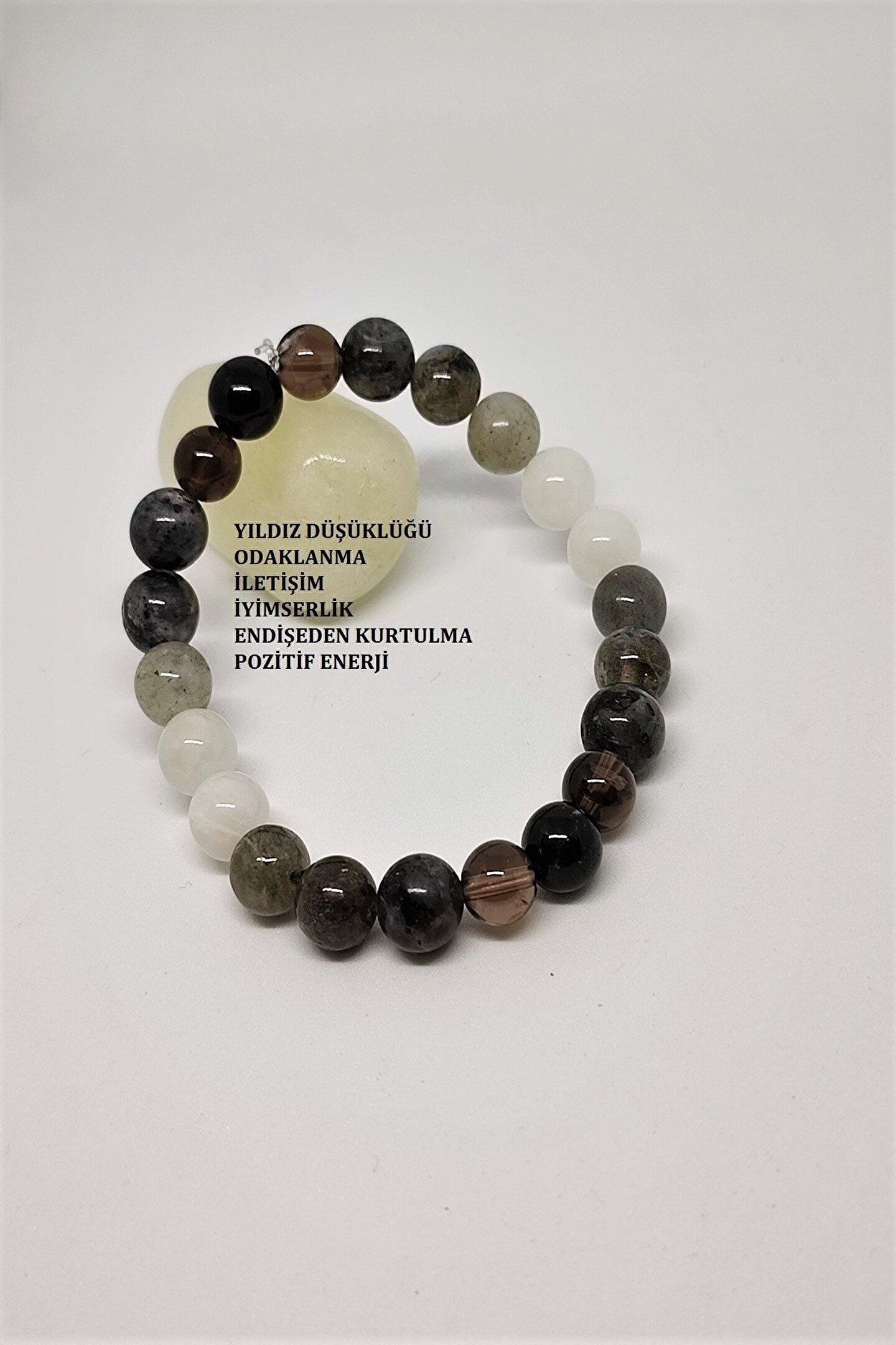 DOĞAL TAŞ CENNETİ Sertifikalı 8 Mm Dumanlı Kuvars, Larvakit, Labradorit, Ay Taşı Doğaltaş Bileklik