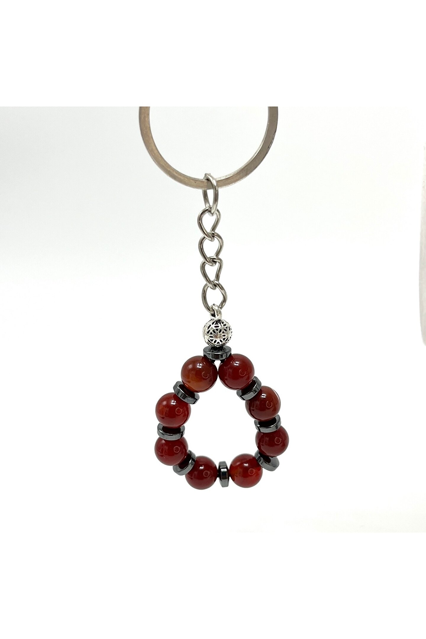 DOĞAL TAŞ CENNETİ SERTİFİKALI Kırmızı Akik Doğal Taş Anahtarlık 8mm