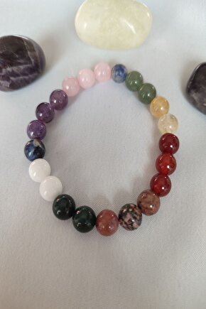 Doğal taşların eşsiz güzelliğini bileğinizde hissedin: Bu bileklik, sodalit, pembe kuvars, ay taşı, aventurin, kan taşı, rodonit, ametist ve sitrin gibi farklı türlerdeki doğal taşlarla süslenmiştir; Sertifikalı kalite: Her bir bileklik, sertifikalı doğaltaşlar kullanılarak üretilmiştir, böylece her bir parçanın orijinalliği ve kalitesi garanti altına alınmıştır; Şıklığı ve rahatlığı bir arada: Hem şık bir aksesuar olarak günlük kullanım için idealdir hem de bileğinizde rahat bir his sağlar; Farklı renk ve desen seçenekleri: Farklı renk ve desenlerdeki taşlarla tasarlanan bu bileklikler, kişisel tarzınıza uygun birçok seçenek sunar; Özel günler için mükemmel hediye: Sevdiklerinize doğanın zarafetini ve güzelliğini hatırlatan bu bilekliklerle özel günlerde anlamlı bir hediye verebilirsiniz;