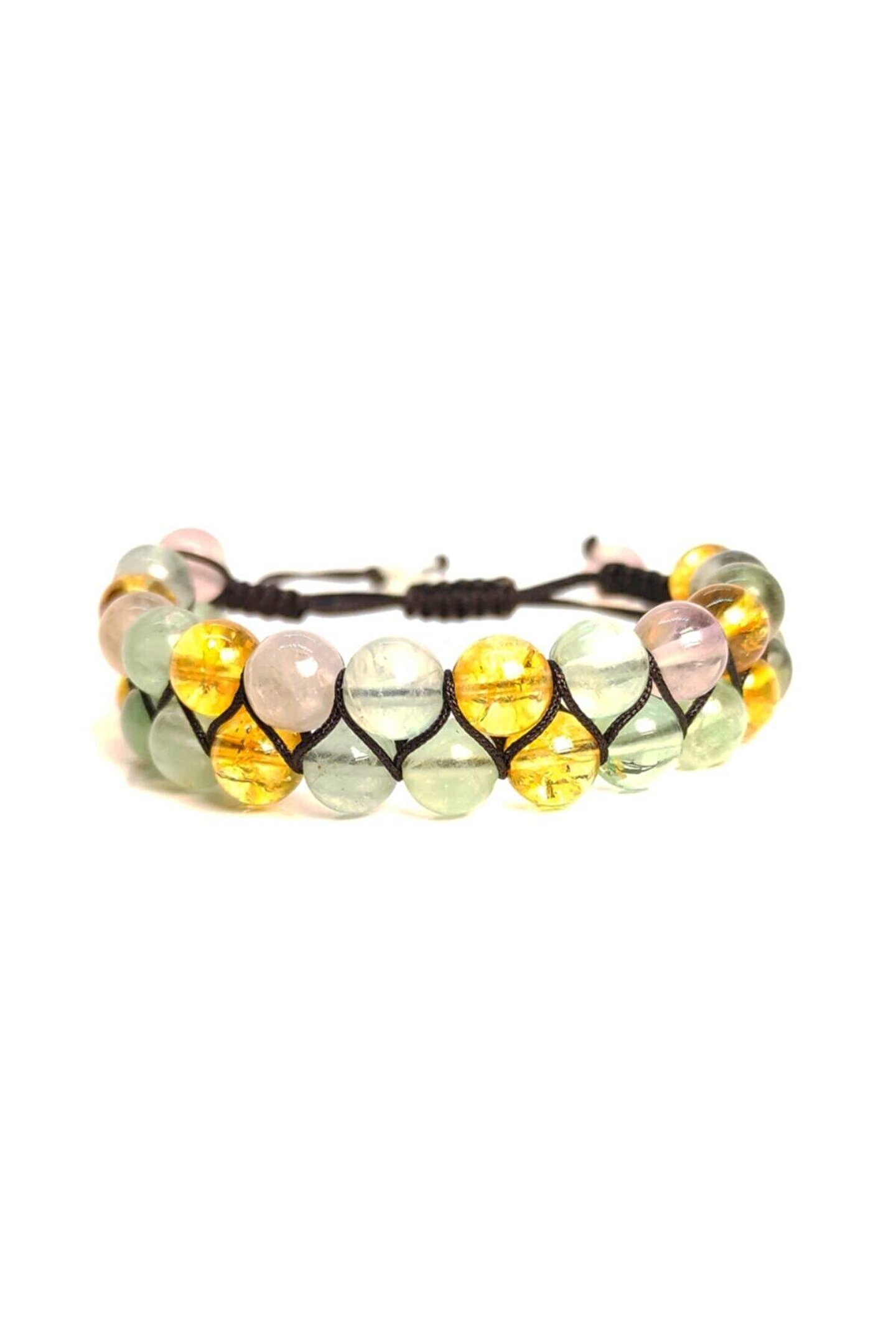 Doğal taş kullanımı, her bir bilekliğin benzersiz ve otantik bir görünüm kazanmasını sağlar; Çift sıra örme tasarımı, bilekliklere zarif bir dokunuş ekler ve şıklığınızı tamamlar; Sitrin florit taşı, bilekliklere canlı ve göz alıcı bir parlaklık kazandırır;