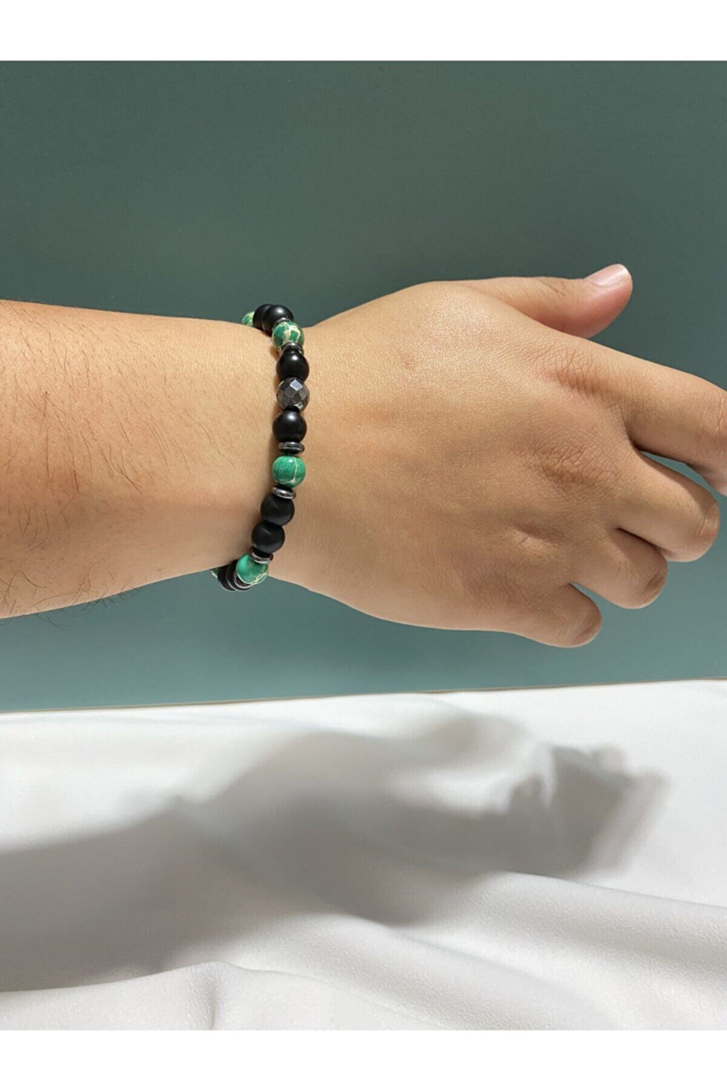 DOĞAL TAŞ CENNETİ Varisit Hematit Obsidyen Doğal Taş Bileklik