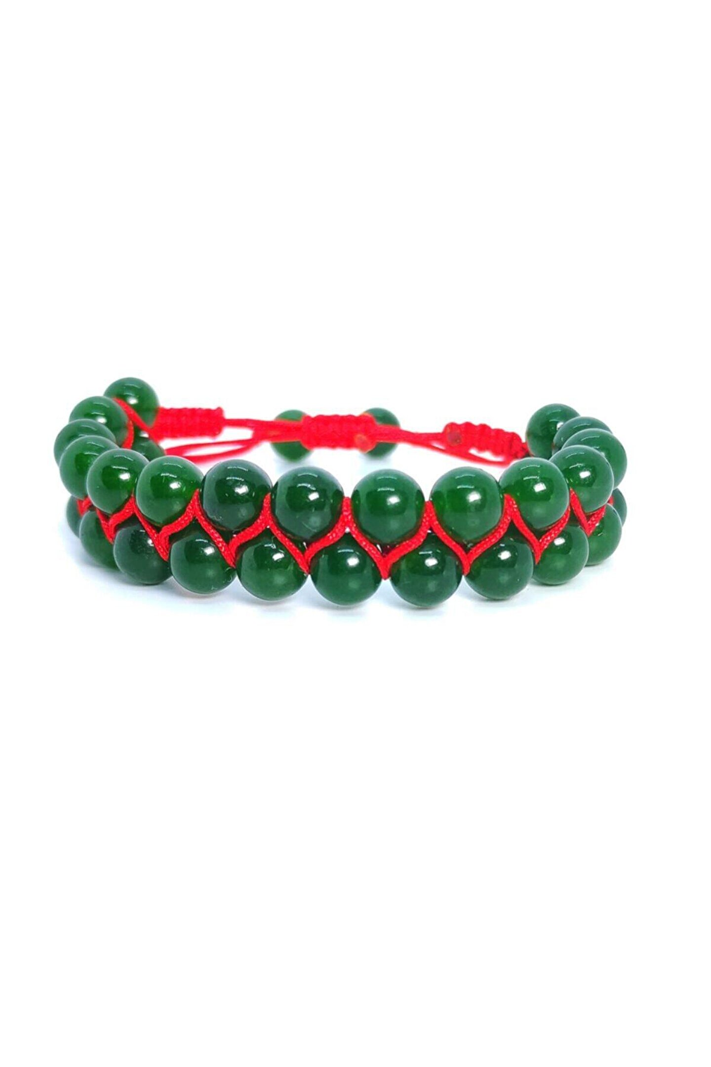 Doğal Yeşim taşı kullanılarak üretilmiş, zarif ve şık bir aksesuar; Çift sıra örme bileklik tasarımı, bileklerinize modern ve estetik bir görünüm kazandırır; Yeşim taşı, benzersiz renk tonları ve desenleriyle dikkat çeker; her kıyafetle uyum sağlar; Doğal taş kullanımı sayesinde her bileklik benzersizdir ve her biri eşsizdir; El yapımı olması, ürünün kalitesini ve özgünlüğünü ön plana çıkarır;