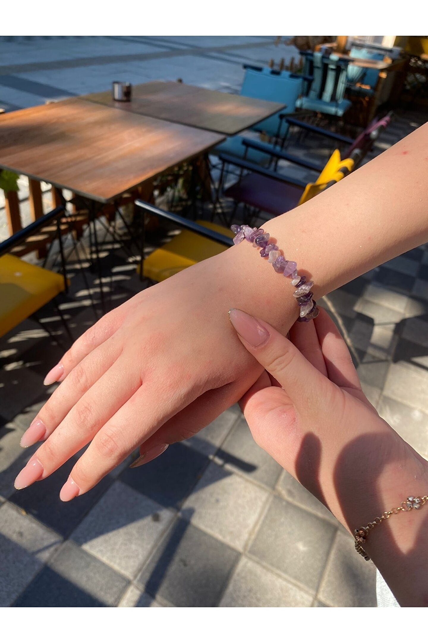 - Doğal ametist taşı kullanılarak üretilmiş, şıklığı ve zarafeti bir arada sunan bileklik; - Doğal taş materyali sayesinde her bileklik benzersiz ve otantik bir görünüm kazandırır; - Ametist taşı, sakinleştirici etkisiyle bilinir ve günlük kullanım için ideal bir aksesuar seçeneği sunar;