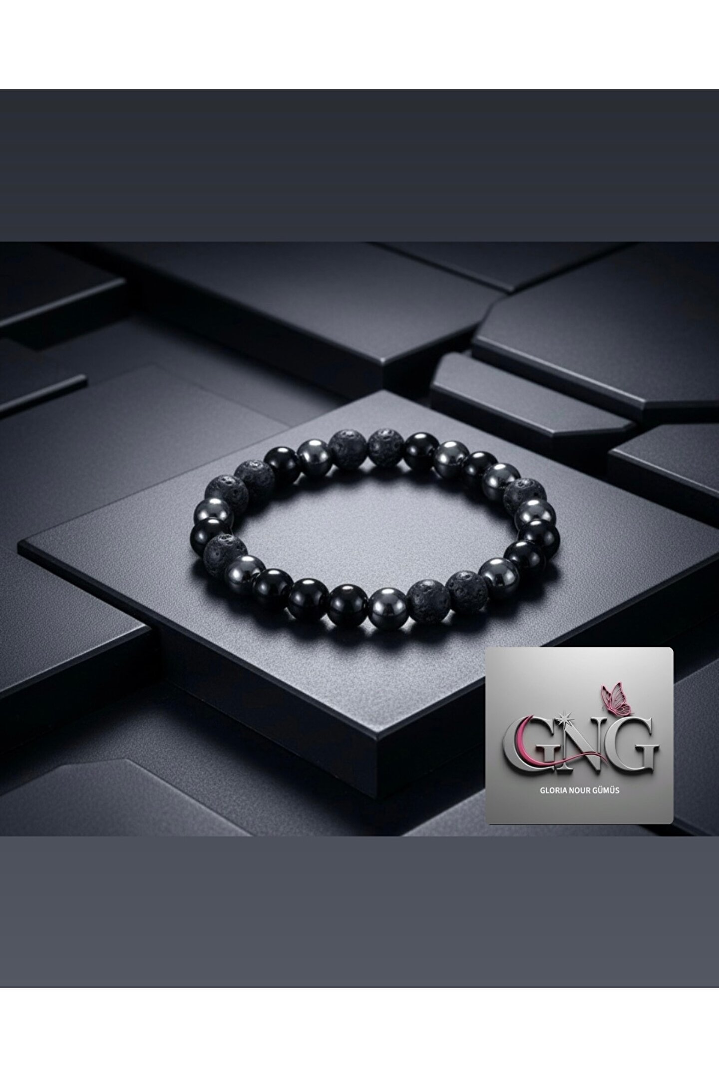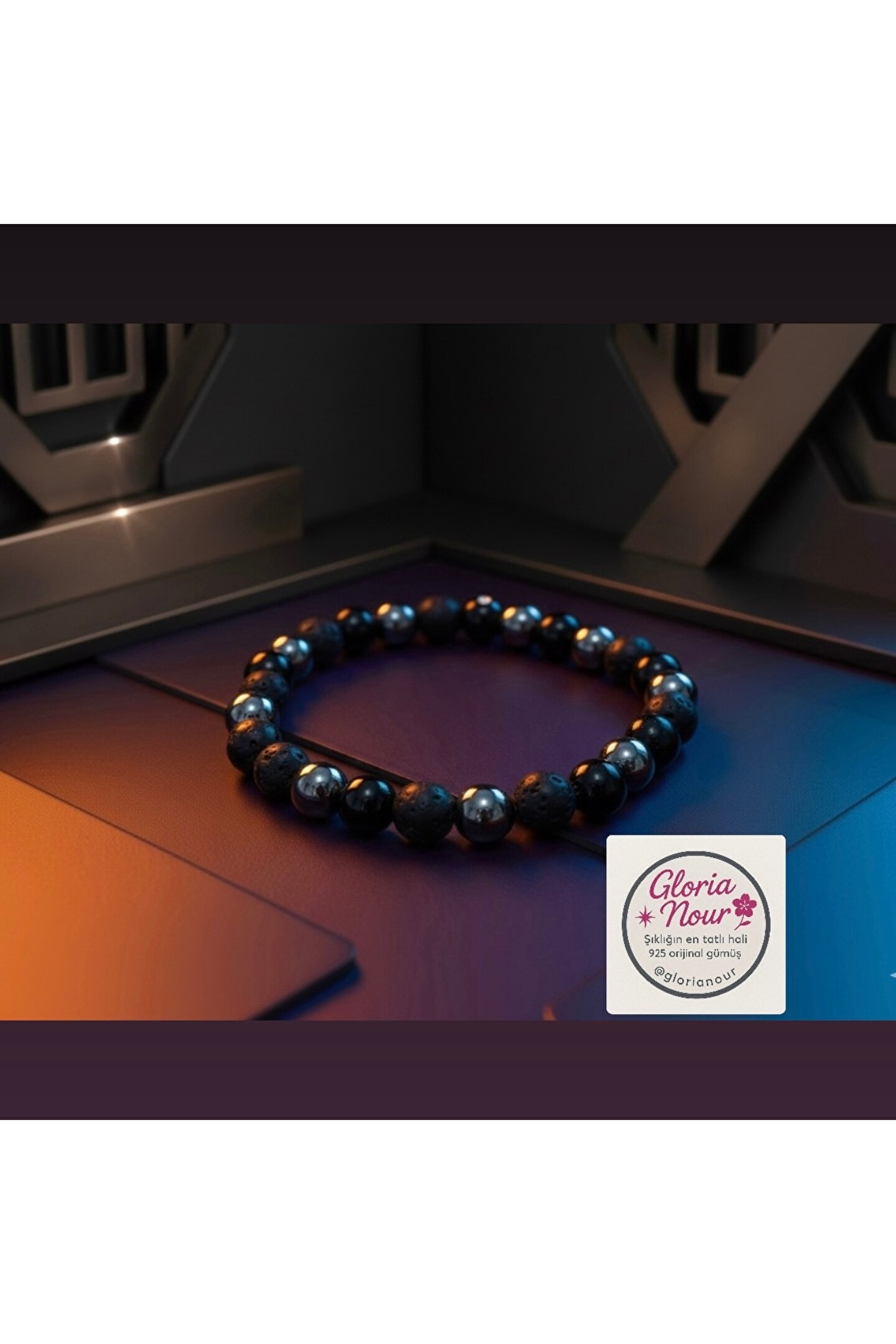 Hediye kutusunda gönderilir.; 8 mm doğal taştan üretilmiş.; Taş dizilimi sıralıdır 1havlit-1hematit-1obsidyen.; dizilimde gönderim sağlanır özel tasarım erkek bileklik Hematit ,Obsidyen ve Lav taşı Erkekler için özel olarak tasarlandı.; Doğal taşların faydası Topraktan bedeninize gelir herbiri özel faydalar taşır.