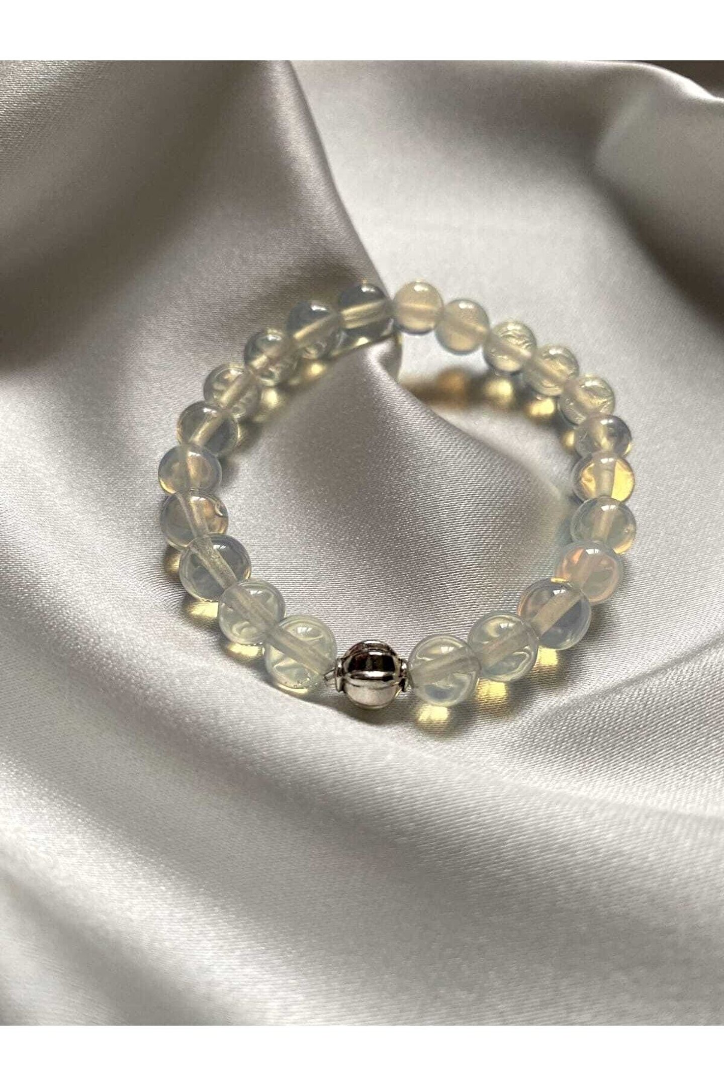 Doğal taş bileklik, şıklığınızı tamamlayacak zarif bir aksesuar seçeneği sunar; Ay taşı kullanımı, bilekliğe benzersiz bir karakter kazandırarak günlük kombinlerinizde fark yaratmanızı sağlar; Doğal taş materyali sayesinde her bileklik benzersizdir ve her zaman taze bir görünüm sunar; Taş cinsi olarak ay taşı seçimi, bilekliğe mistik ve büyüleyici bir hava katar;