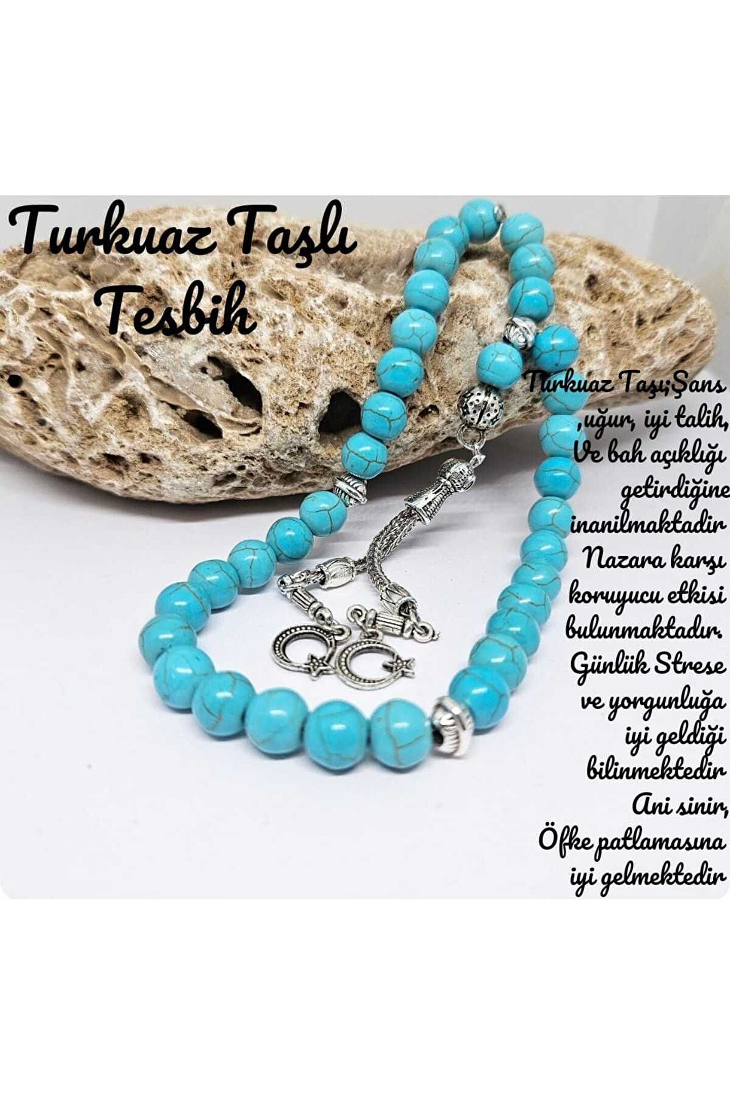 Turkuaz Taşı;Şans , uğur, iyi talih, uğur, baht açıklığı getirdiğine inanılmaktadır. Nazara karşı koruyucu etkisi bulunmaktadır. Ani öfke patlaması .strese iyi geldiği bilinmektedir.