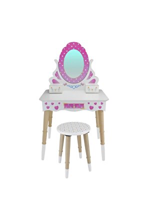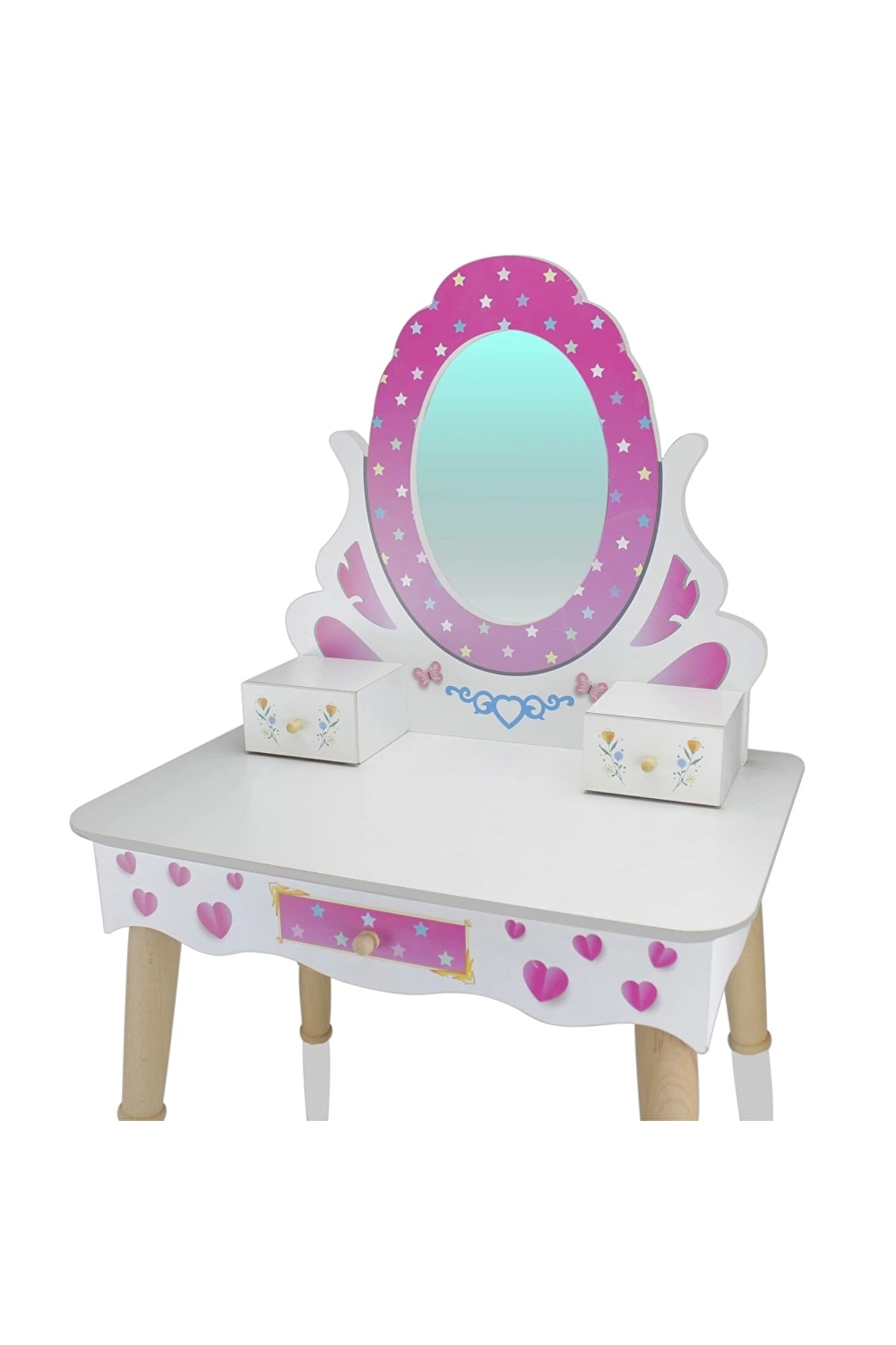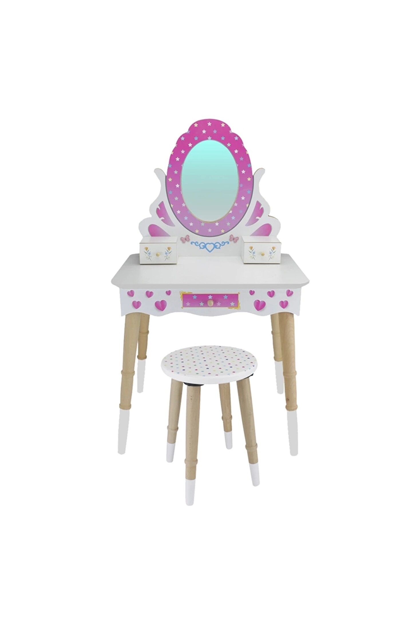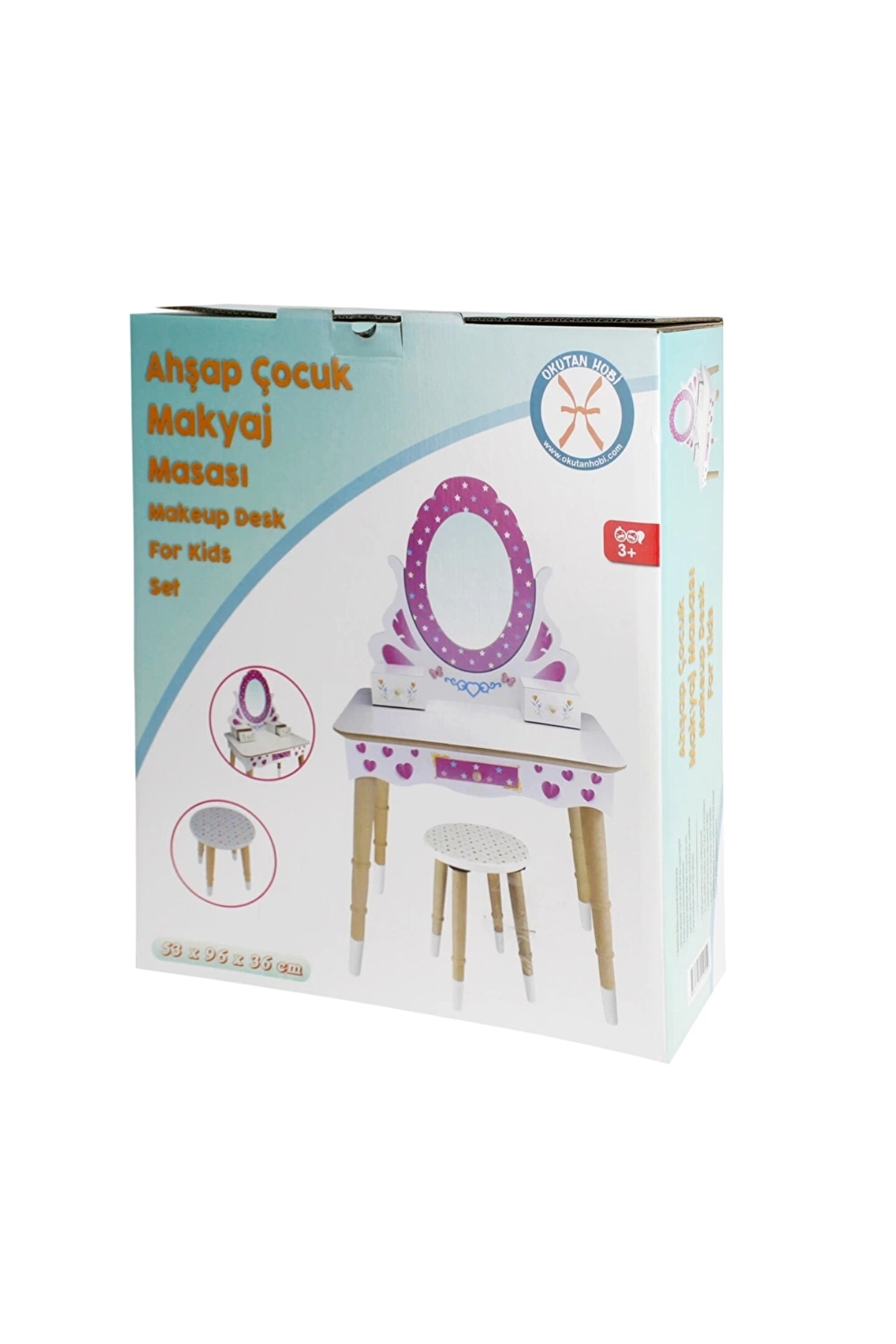 Doğan Oyuncak Dünyası Ahşap Oturaklı Güzellik Masası - Makyaj Seti - Ahşap Güzellik Seti - Makyaj Masası
