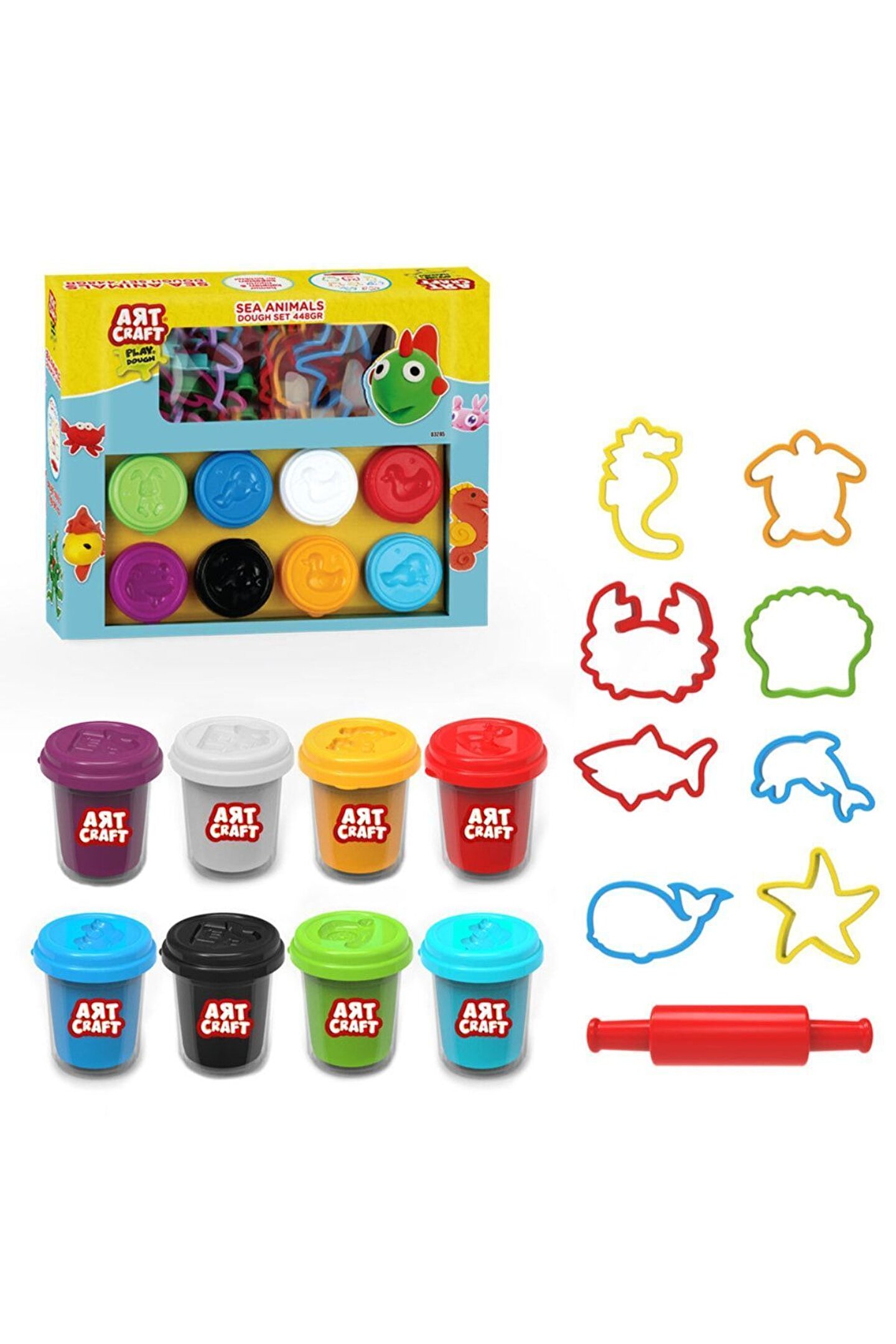 Ürün, 8 adet 56gr oyun hamuru, 8 adet deniz hayvanları kalıbı ve 1 adet merdaneden oluşmaktadır.; El becerileri kazandırır.; Hayal gücünü zenginleştirir.; Duyuları geliştirir.; Öğrenmeyi pekiştirir.; Ürün; 3 yaş altı çocuklar için uygun değildir.; Sağlık testlerinden geçmiştir.; Yerli üretimdir.