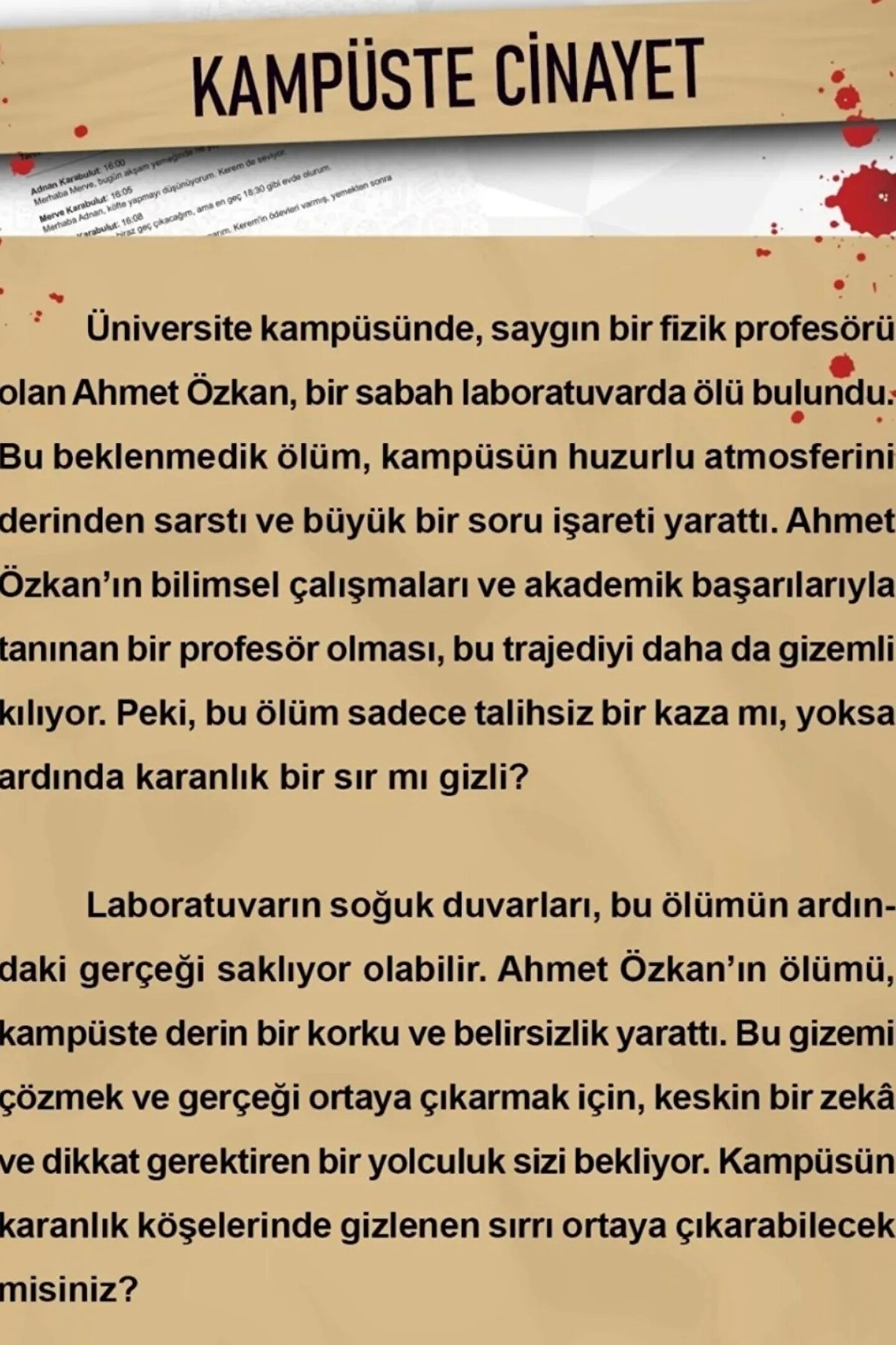 Kampüste Cinayet Dedektif Oyunu - Dava Çözme Oyunu - Suç Çözme Oyunu - Cinayet Oyunu Cinayet Çözme