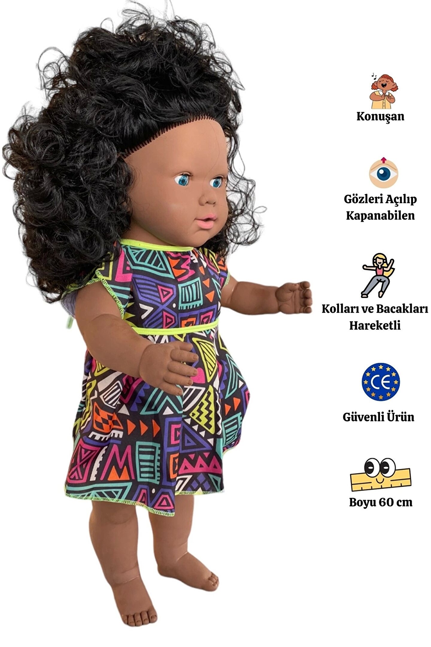 Doğan Oyuncak Dünyası Oynar Gözlü Türkçe Konuşan Siyahi Nazlı Saçlı Et Bebek 60 Cm. - Konuşabilen Bebek - Saçlı Büyük Bebe