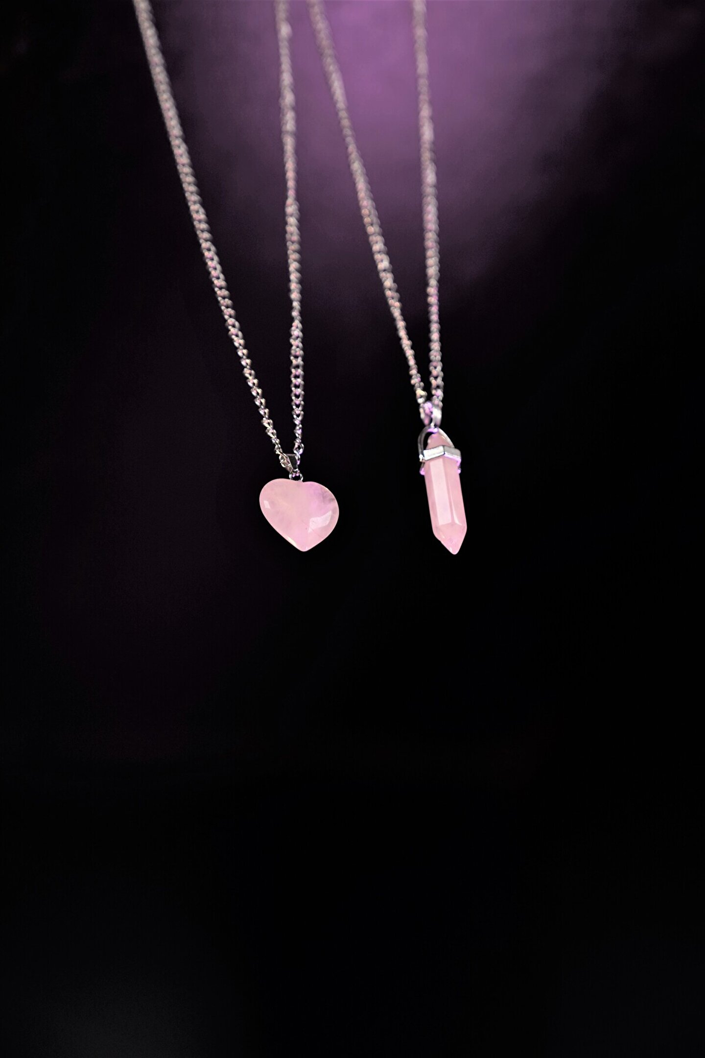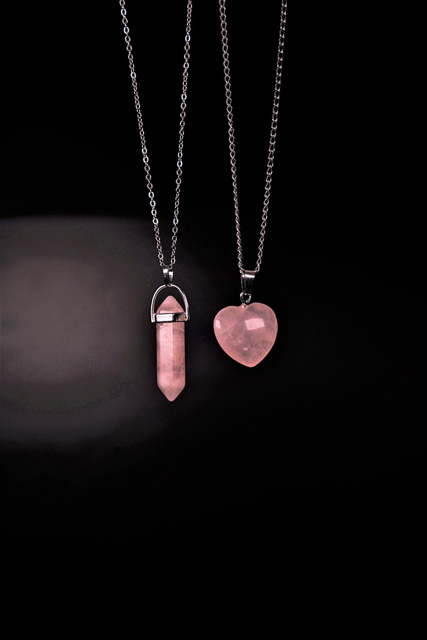 DOODLE Sevgililere Ve Arkadaşlara Pembe Kuvars Doğaltaş Kolye Seti