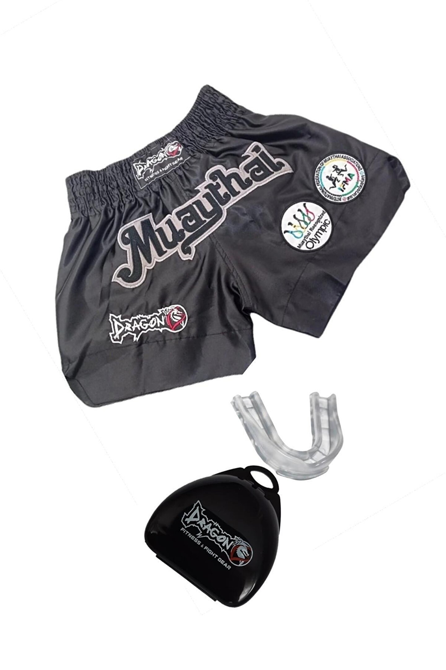 Dragondo Muay Thai Federasyon Onaylı Nakışlı Maç Şortu Ve Şeffaf Dişlik 2li Set