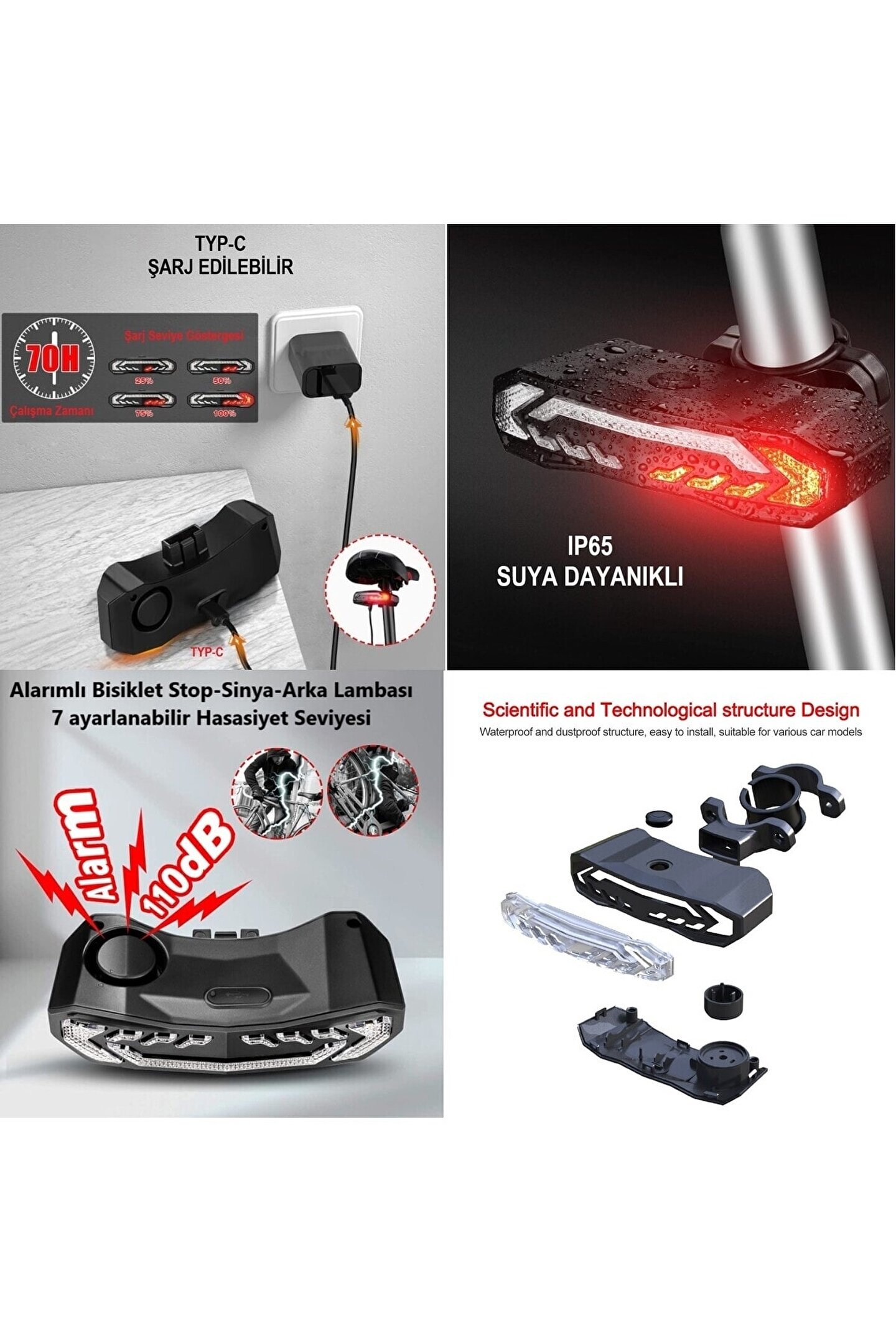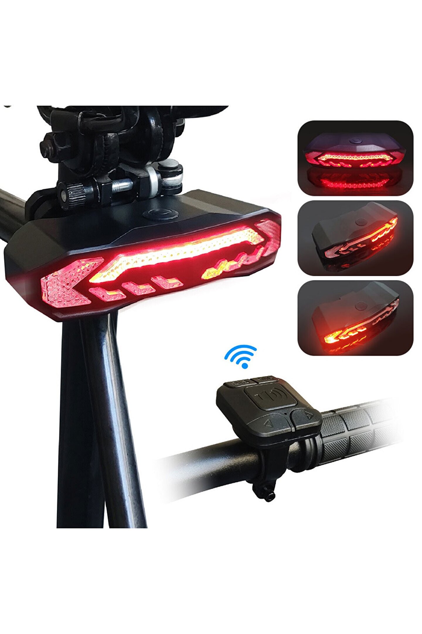 Akıllı Şarj Edilebilir Bisiklet Arka Lamba Dönüş Sinyali Stop Işığı, Uzaktan Kumandalı Alarm, Korna