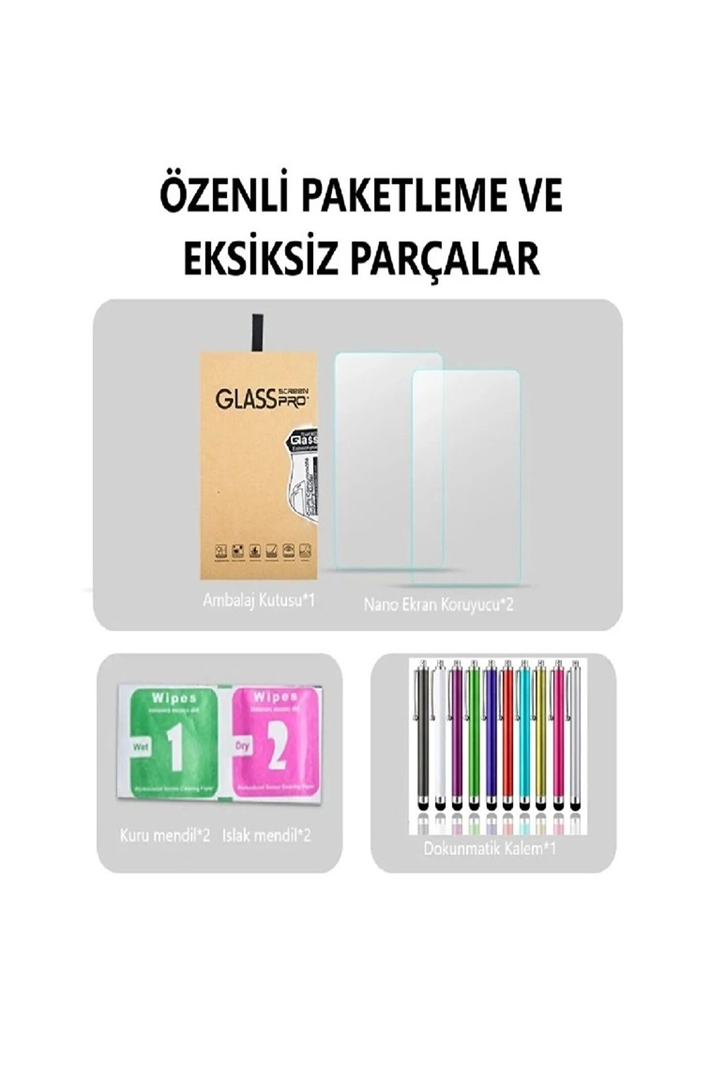 ÜRÜN AÇIKLAMASI 【Mükemmel uyumluluk】: Yalnızca Başlıktaki model" için.; Lütfen satın almadan önce "Ayarlar" - "Cihaz hakkında" seçeneğine tıklayarak tabletinizdeki modeli onaylayın.; Gereksiz sorunlardan kaçının.; 【Yüksek Çözünürlük】: %99,99 yüksek çözünürlüklü hidrofobik ve oleofobik şeffaf ekran katmanı, parmak izlerinden kaynaklanan ter ve yağ kalıntılarına karşı koruma sağlar.; Bu ekran koruyucular ekranınızın orijinal dokunma hassasiyetini korur.; 【Çizilmeye Dayanıklı】: 9H sertlikte NANO cam ekran koruyucu, tablet ekranınızı tuşların veya diğer sert nesnelerin neden olduğu istenmeyen çizilmelere karşı koruyabilir.; 【Son Derece Yüksek Sertlik】: Yuvarlatılmış kenarlı, birinci sınıf 0,33 mm kalınlığında NANO esnek camdan yapılmıştır, 9H'ye kadar çizilmeye karşı dayanıklıdır.; Çizilmelere, sürtünmelere ve darbelere karşı maksimum koruma sağlar.; 【Kolay Kurulum】: Tablet ekranını temizlemek için temizleme paketlerini kullanın, koruyucuyu ekranla hizalayın; otomatik olarak havayı emip kolayca yapışacaktır.;