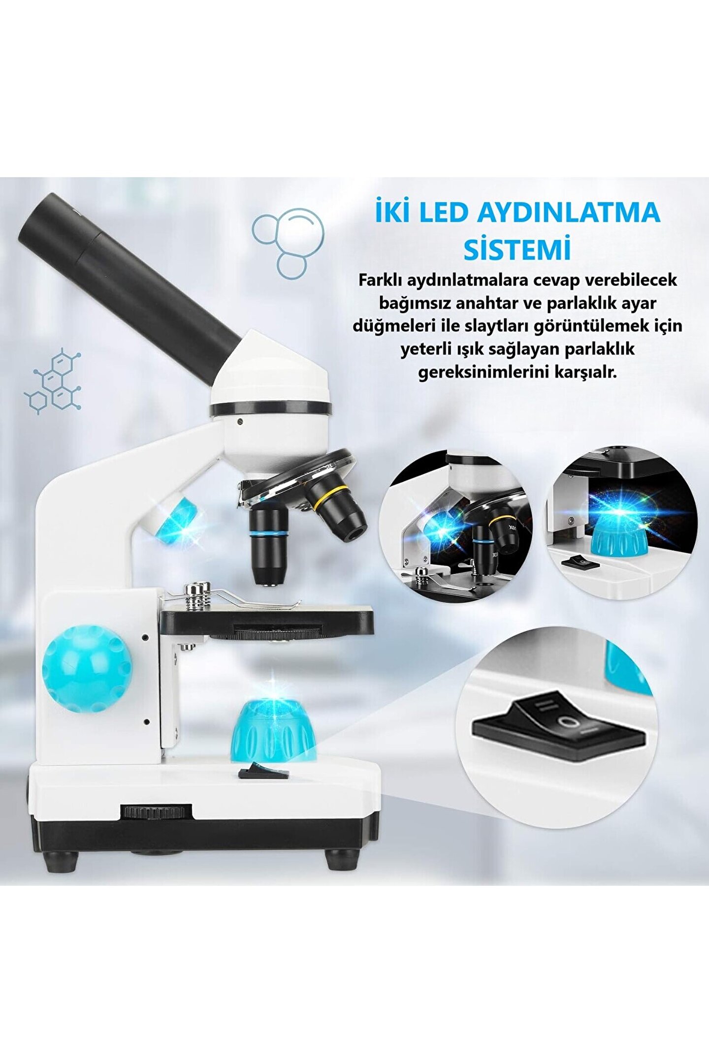Pürüzsüz kaliteli odaklama düğmeleri, sağlam metal kasa, pilveya adaptör seçeneği, çalışma masalarına ve laboratuvarlara uygun mükemmel birmikroskoptur.