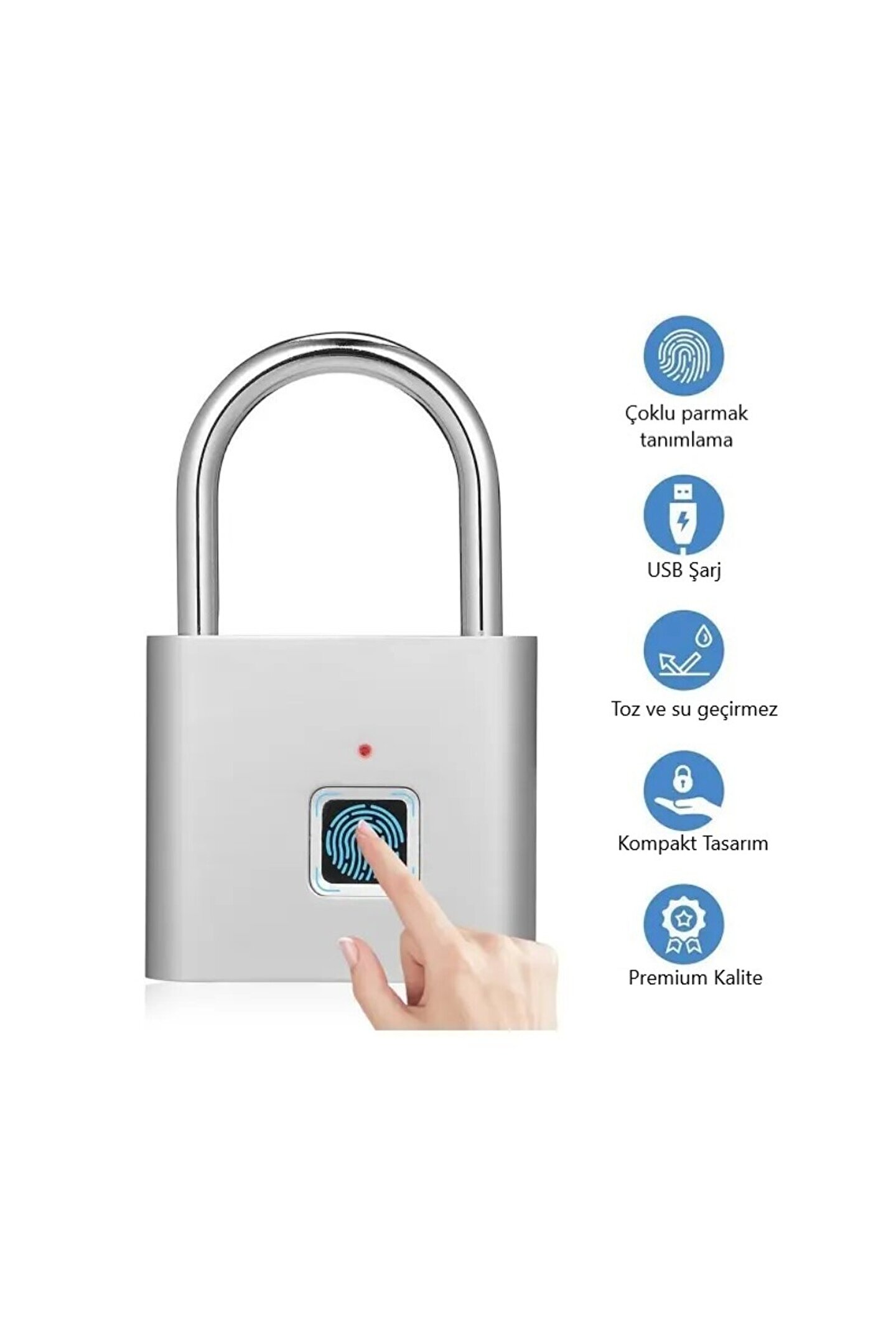 Parmak İzi ile Çalışan Şarjlı Asma Kilit Akıllı ve Güvenli Kilitleme Çözümü Su Geçirmez Anahtarsız