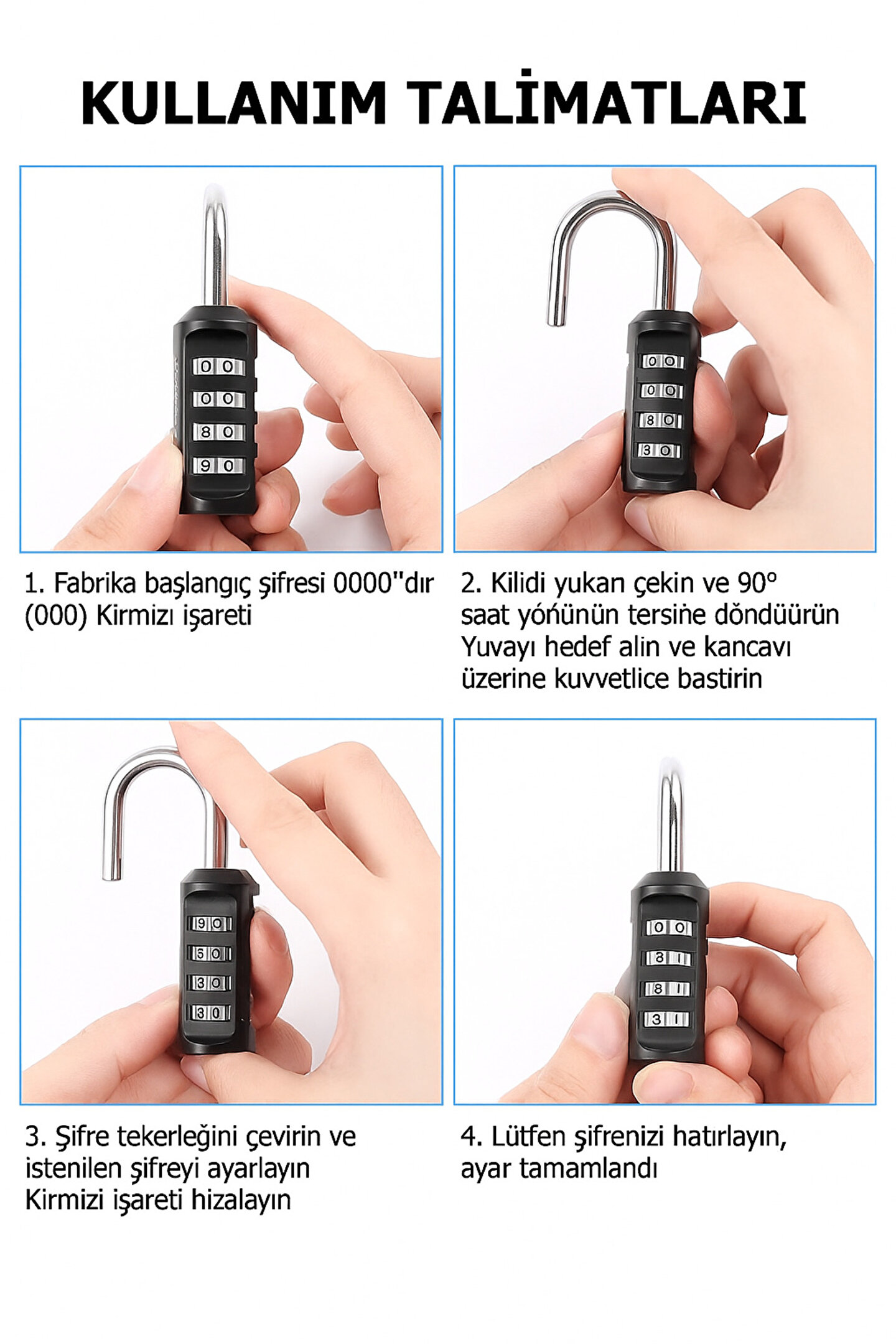 Kilit Tipi: 4 Haneli Şifreli Kombinasyon