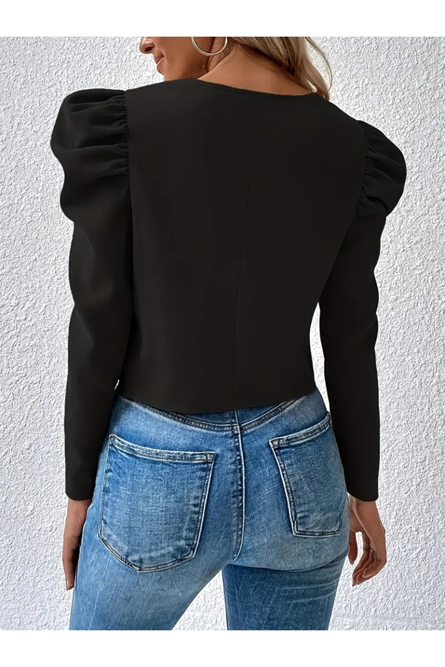 DUOF Kadın Uzun Kollu önden Fermuarlı Balon Kol Süet Ceket