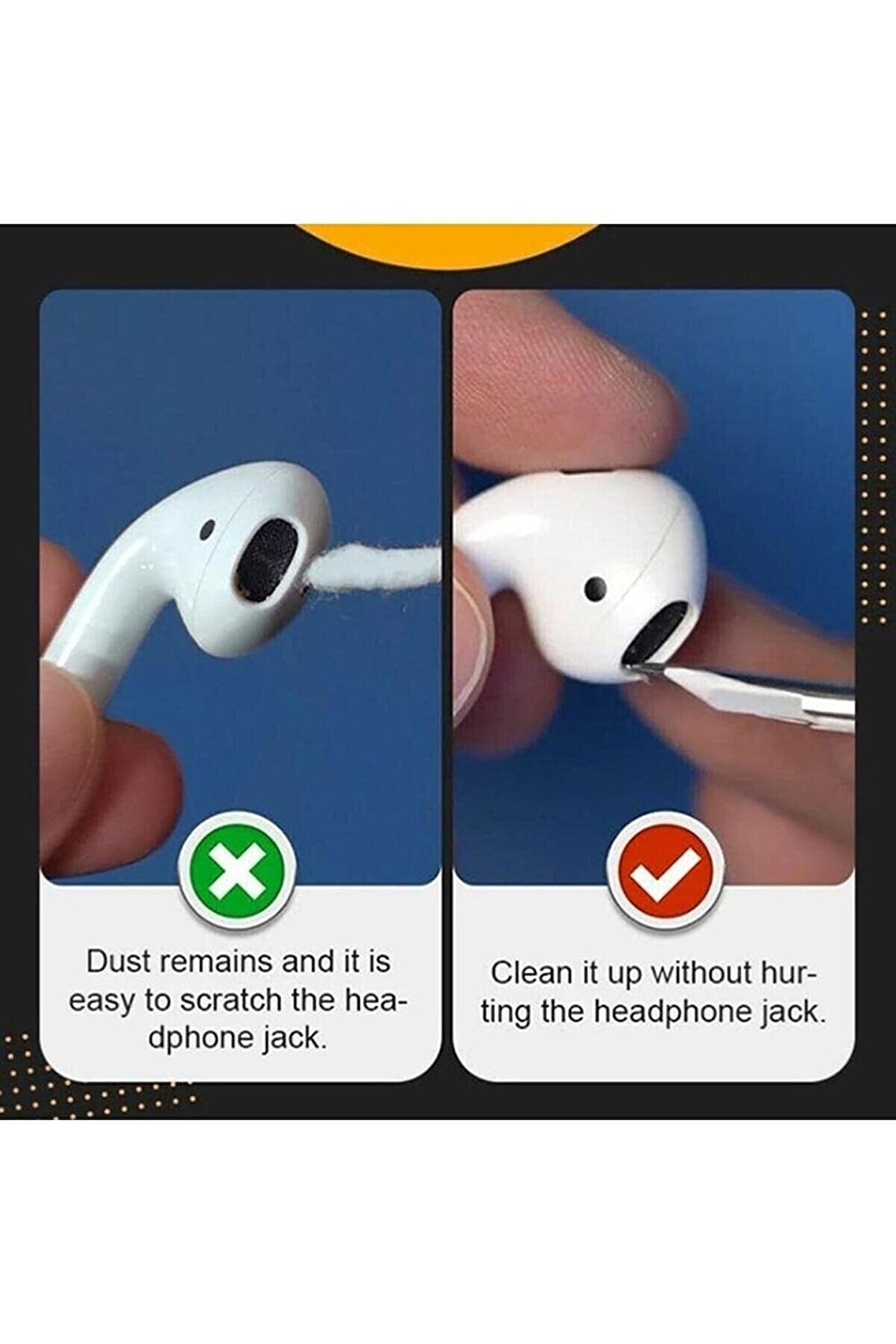 Klavye temizleme, Bluetooth kulaklık temizleme kiti Set içerisinde naylon kıllı fırça, uç kısmında bulunan sünger, sap içerisine gizlenmiş yüksek yoğunluklu fırça, metal kalem ucu ve klavye tuş çektirmesi aparatı bulunmaktadır ; , çeşitli temizlik ihtiyaçlarını karşılamak için fırça sapı içerine gizlenmiş tasarım yumuşak fırça klavyeye zarar vermez. ; Çok fonksiyonlu temizleme kiti : Uç kısımda bulunan süngeri ile kablosuz kulaklığın şarj ünitesinin tozunu temizleyebilirsiniz ; . Yine sap kısmında bulunan yüksek yoğunluklu fırça, kulaklığın ses çıkış deliğindeki kiri temizleyebilir. ; Metal kalem ucu inatçı tozu temizleyebilir. ; Tuşları çekmek çok kolay: Basit bir tuş çektirmesi aparatı ile klavye tuşunun değişimi artık zahmetli değil ve tuşun çıkarılması daha temiz ve daha kapsamlı her türlü temizlik ihtiyacı ile başa çıkmak kolay: ; 4 çeşit temizlik kafası, çok amaçlı, klavye ve kulaklıkların her köşesinde derin temizlik ;