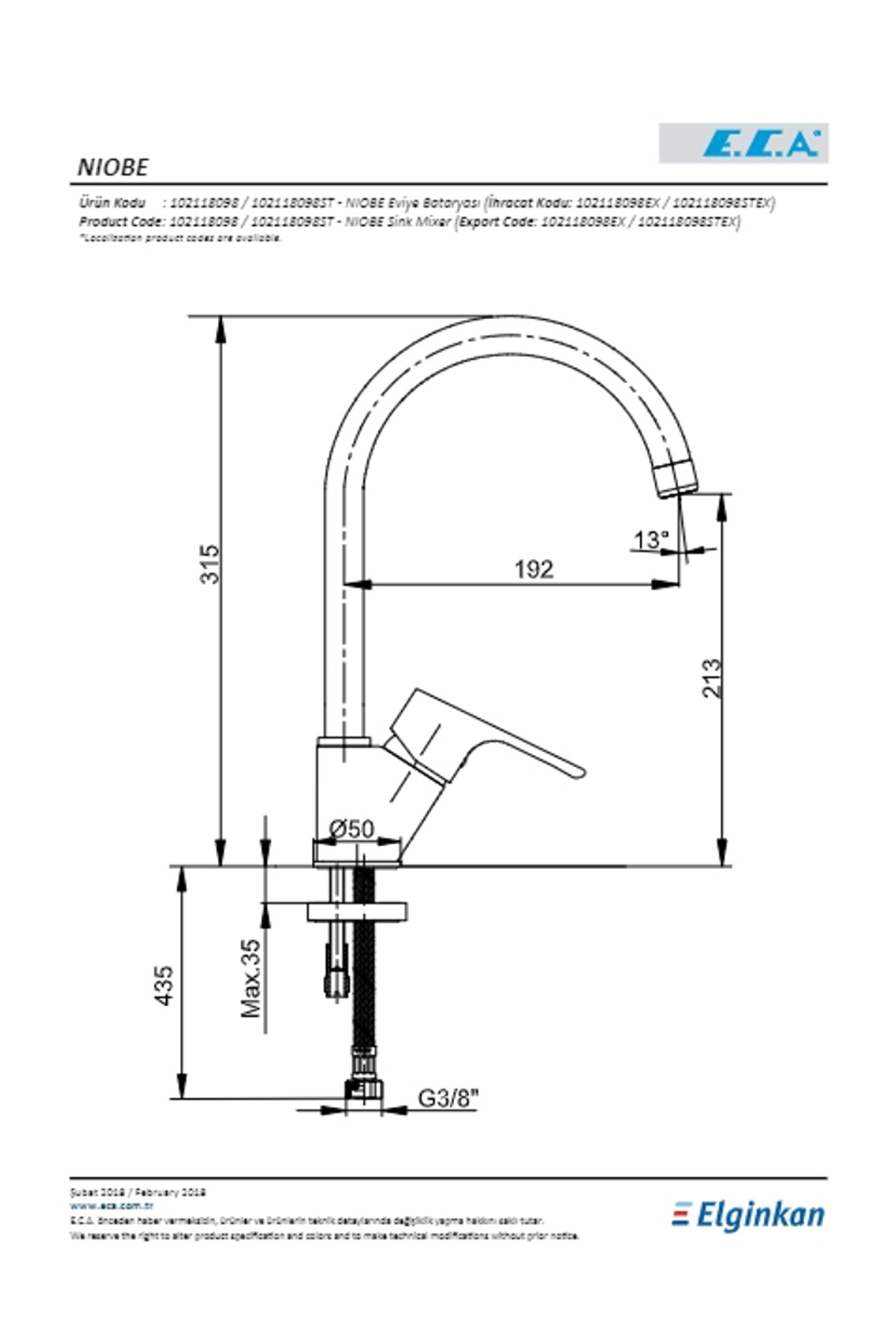 ECA Niobe Mutfak Eviye Bataryası Kuğu Model Mutfak Armatür E.; C.; A 102118098 20 Yıl Garantili ; ; ; Eca Niobe Mutfak Bataryasının Avantajları ; ; Eca Niobe mutfak bataryası çıkış ucu uzunluğu 192 mm’dir.; ; Çıkış ucu yüksekliği 213 mm’dir.; ; Kireç kırıcılı perlatör ; 360° döner çıkış uçlu ; 3 bar basınçta su akış miktarı dakikada maksimum 7,4 lt, “ST”li kodlarda ise dakikada maksimum 5 lt’dir.; ; Ürün Rengi: Krom ; Ürün Kodu: 102118098 ; ; Ürünlerimiz belirtilmiş olan garanti süreçleri içerisin de ücretsiz olarak E.; c.; a yetkili servis ekiplerince ve servisleri tarafından hizmet verilmektedir.; ; ; E.; c.; a Merkez servis numarası : 444 0 322 nolu numaradan detaylı bilgi ve destek alabilirsiniz.; ; ; ; ECA Niobe Mutfak Eviye Bataryası Kuğu Model Mutfak Armatür E.; C.; A 102118098 20 Yıl Garantili ; ; ; Eca Niobe Mutfak Bataryasının Avantajları ; ; Eca Niobe mutfak bataryası çıkış ucu uzunluğu 192 mm’dir.; ; Çıkış ucu yüksekliği 213 mm’dir.; ; Kireç kırıcılı perlatör ; 360° döner çıkış uçlu ; 3 bar basınçta su akış miktarı dakikada maksimum 7,4 lt, “ST”li kodlarda ise dakikada maksimum 5 lt’dir.; ; Ürün Rengi: Krom ; Ürün Kodu: 102118098 ; ; Ürünlerimiz belirtilmiş olan garanti süreçleri içerisin de ücretsiz olarak E.; c.; a yetkili servis ekiplerince ve servisleri tarafından hizmet verilmektedir.; ; ; E.; c.; a Merkez servis numarası : 444 0 322 nolu numaradan detaylı bilgi ve destek alabilirsiniz.; ; ;