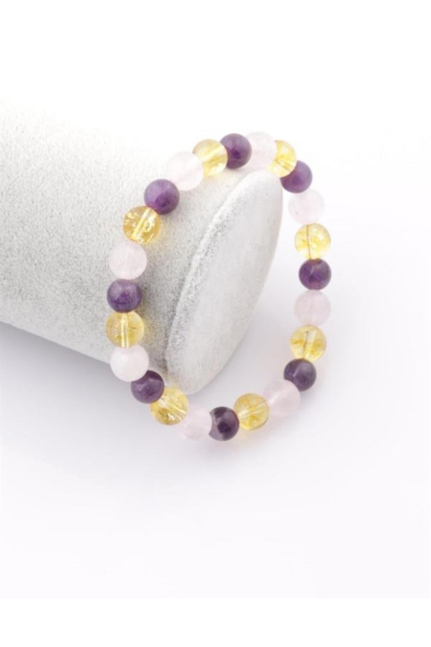 8 mm'dir. ; Sitrin bolluk bereket taşıdır, Ametist:Negatif enerjiden korur, pozitif enerji verir. ; Negatif enerjiyi olumlu bir enerjiye çevirir. ; Huzur ve rahatlık verir. ; Güçlü ve koruyucu bir taştır. ; Strese karşı korur, sakinleştirici bir özelliği vardır. ; Meditasyon yaparken kullanılır, enerjiyi dengeler. ; Pembe Kuvars:Öfke ve kırgınlığı iyileştirir, kalbin rahatlamasını sağlayarak sakinlik verir. ; Taşıyanların kendilerini keşfetmesine, tanımasına ve kendilerini sevmesine yardımcı olur. ; Baş ağrısını azaltma, kaygı ve stresi gidermede etkilidir. ; Elastik yapıdadır. ; Not: Ürünler doğal taş olduğu için renk tonları küçük farklılıklar gösterebilir.;