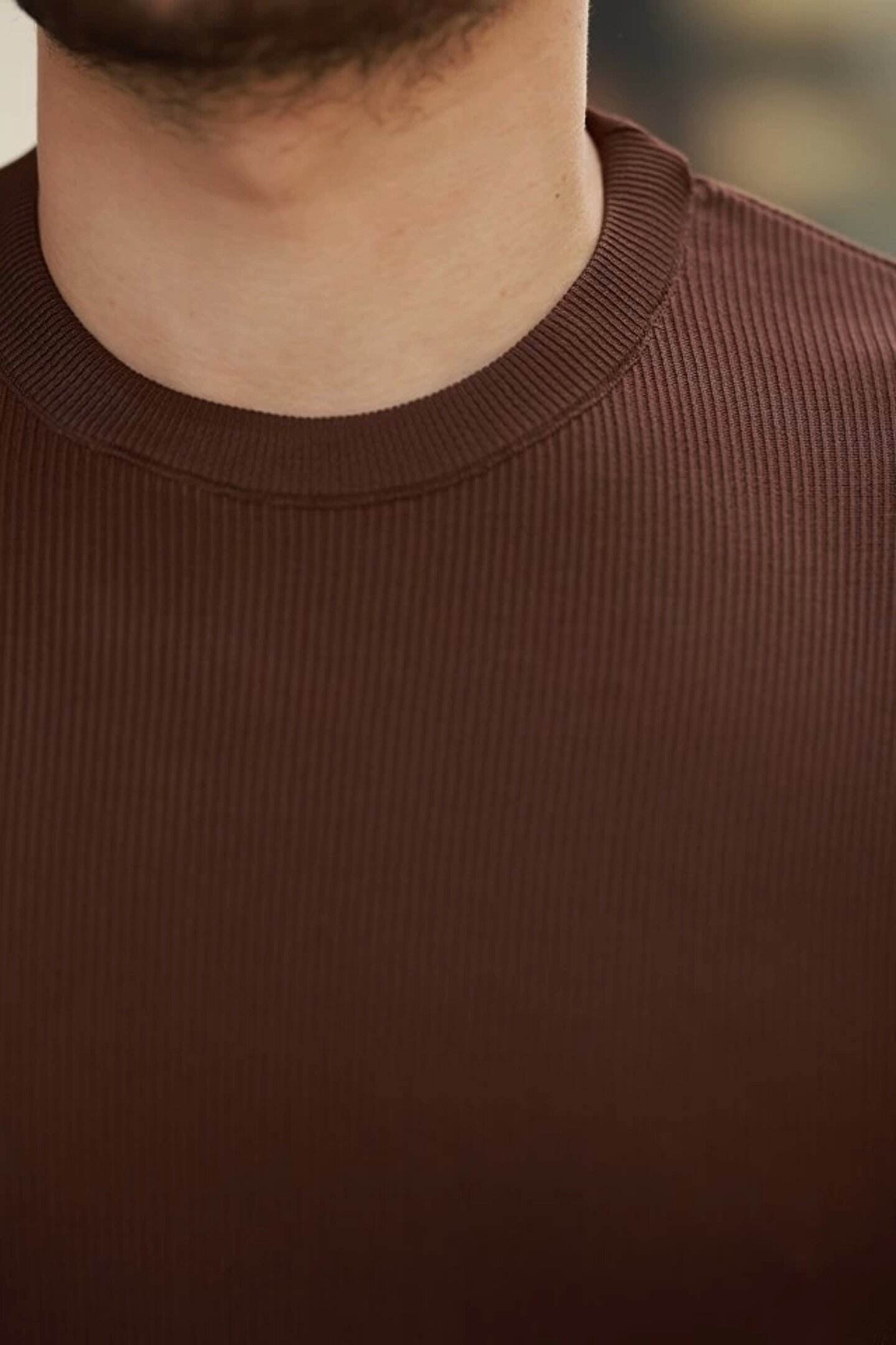 Erkek Bisiklet Yaka Jakarlı Kısa Kollu Tshirt