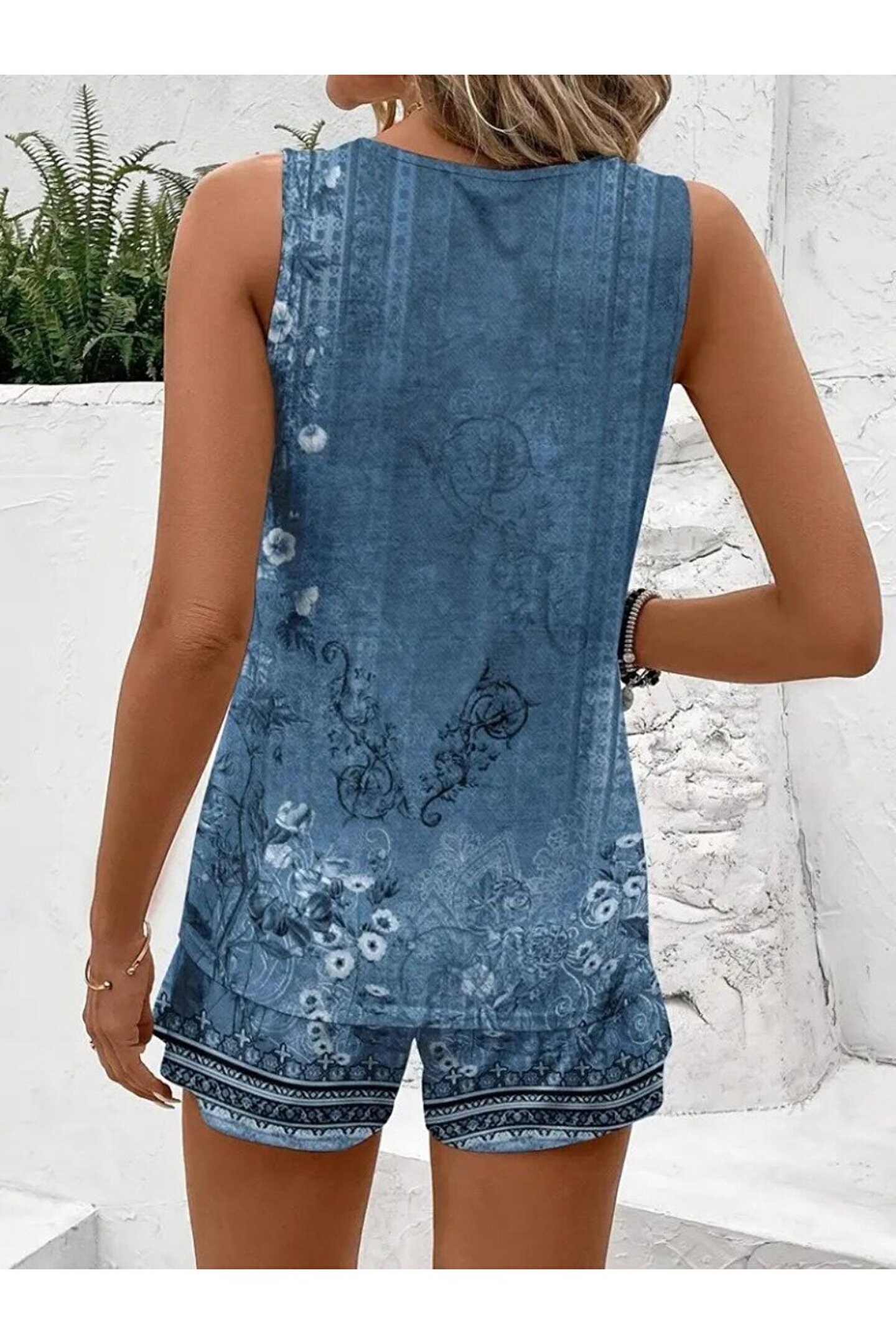 Edolika EQURİ Kadın Askılı Yuvarlak Yaka çiçek Baskılı Süprme Bluz Ve Short Ikili Takım