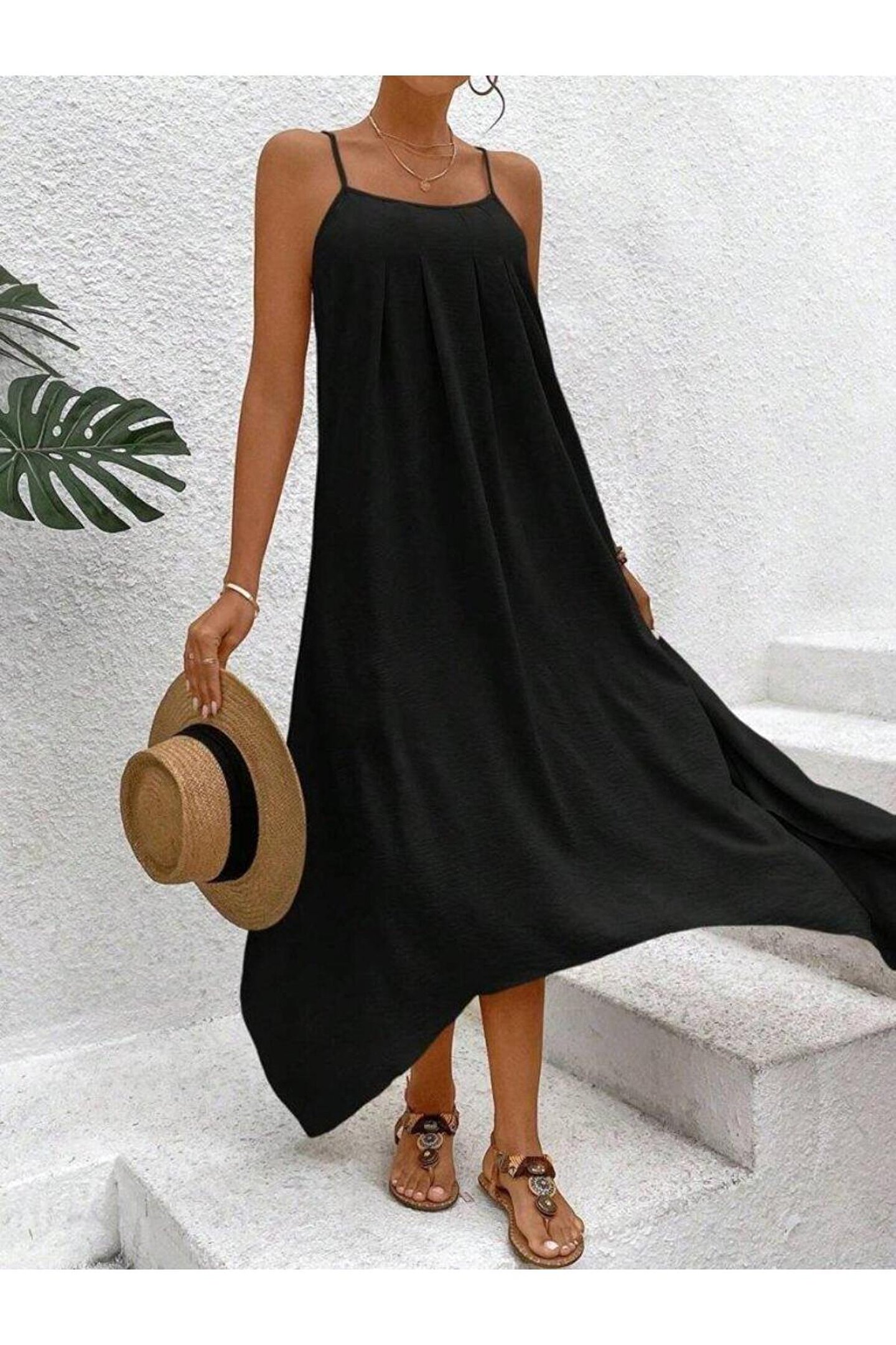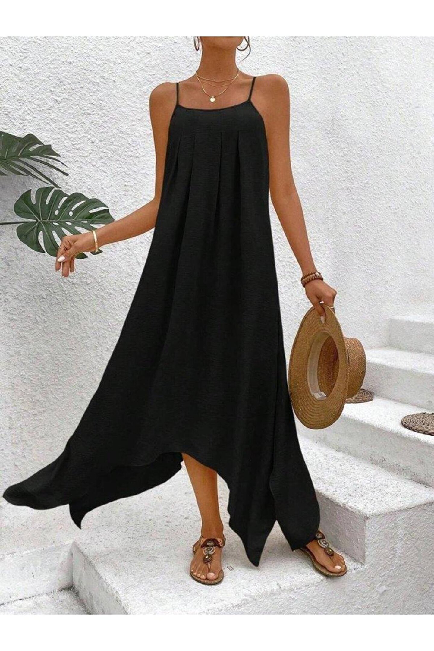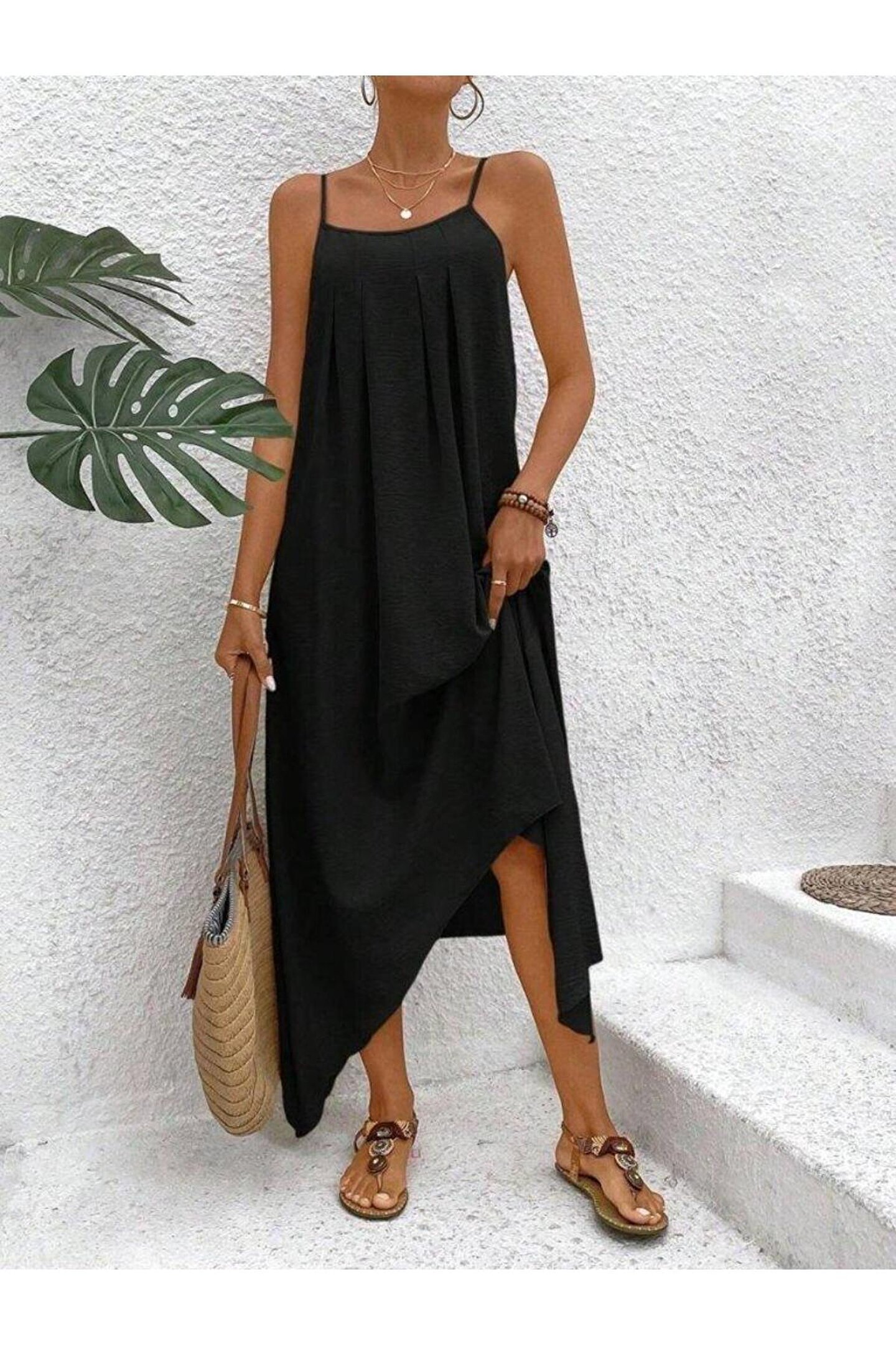 Kadın Ip Askılı V Yakalı Asimetrik Detaylı Aerobin Elbise