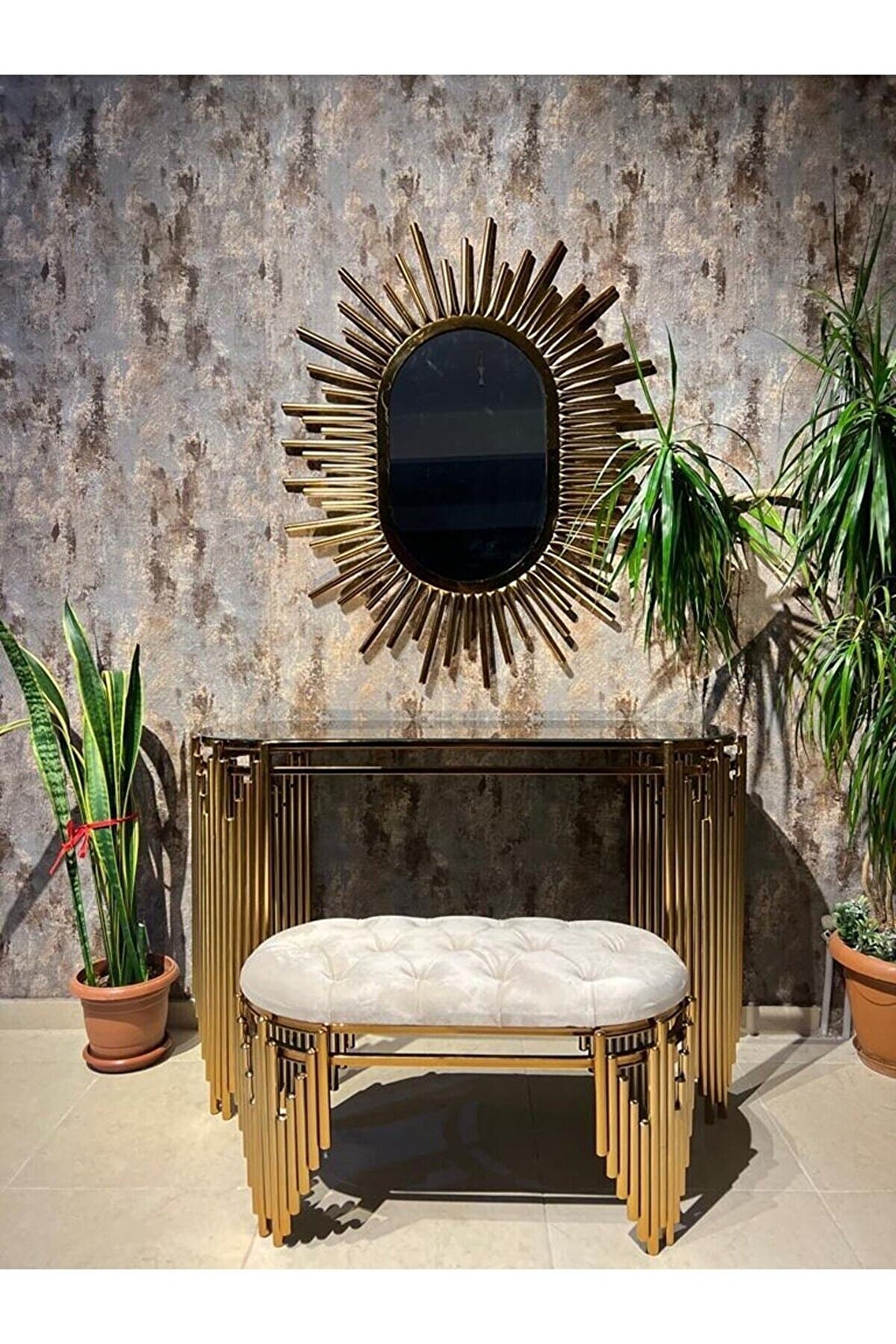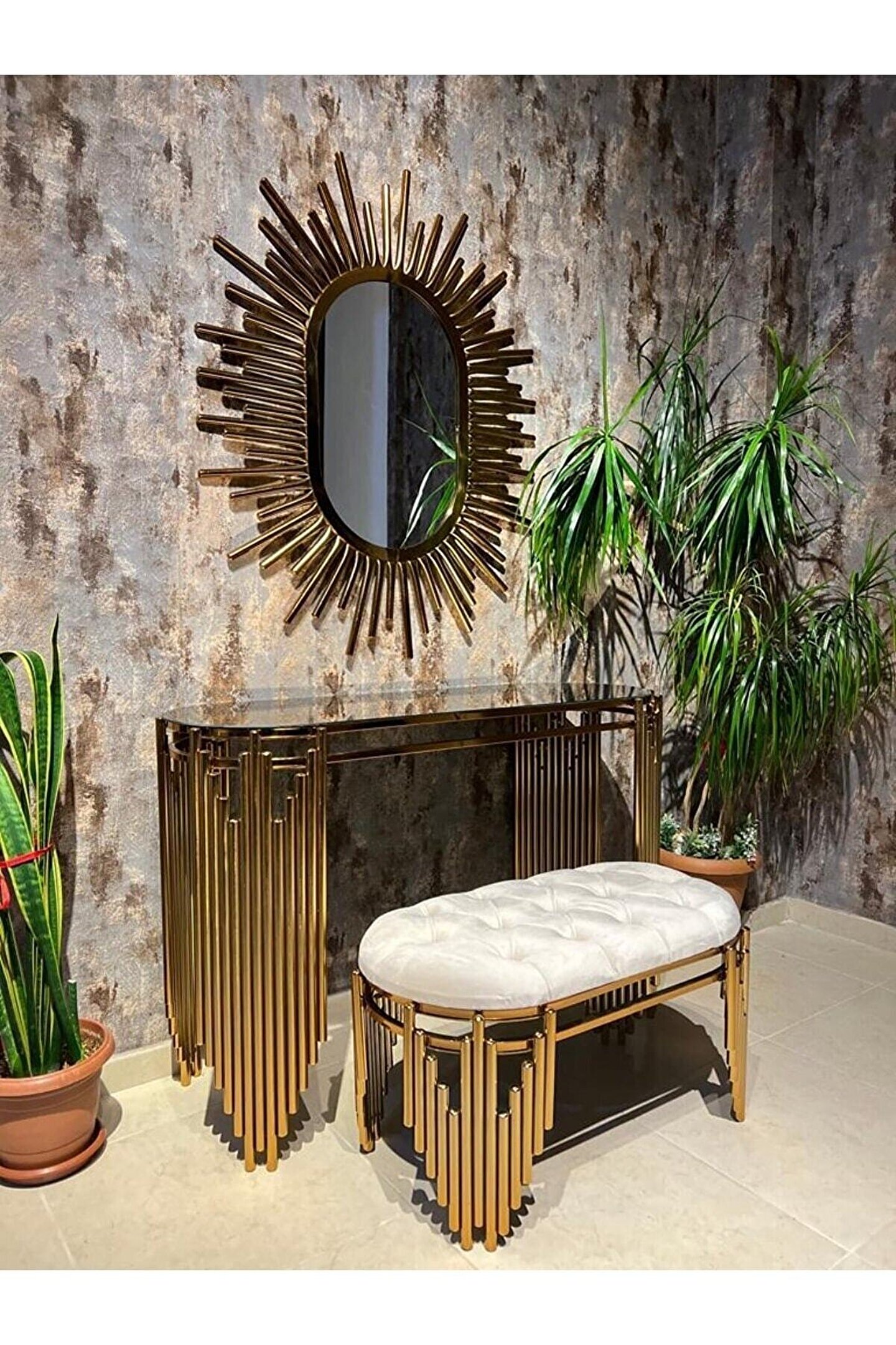 Modern tasarımıyla evinizin dekorasyonuna şıklık katan metal dresuar takımı, dayanıklı yapısıyla uzun ömürlü kullanım sunar; Paslanmaz kararmaz lak kaplama sayesinde, zamanla renk değişimi ve kararma gibi sorunlarla karşılaşmazsınız; Aynalı yapısı ile hem fonksiyonel hem de estetik bir görünüm sağlar; günlük kullanım için idealdir; Metal malzemesi sayesinde ağır eşyalarınızı güvenle yerleştirebilir ve dresuarın sağlamlığını hissedebilirsiniz;