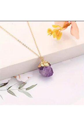 EL YAPIMI Ametist Ham Taş Kolye 100%100 dogaltaş sertifikalı – Panik Atak ve Kaygıya Karşı Doğal Destek