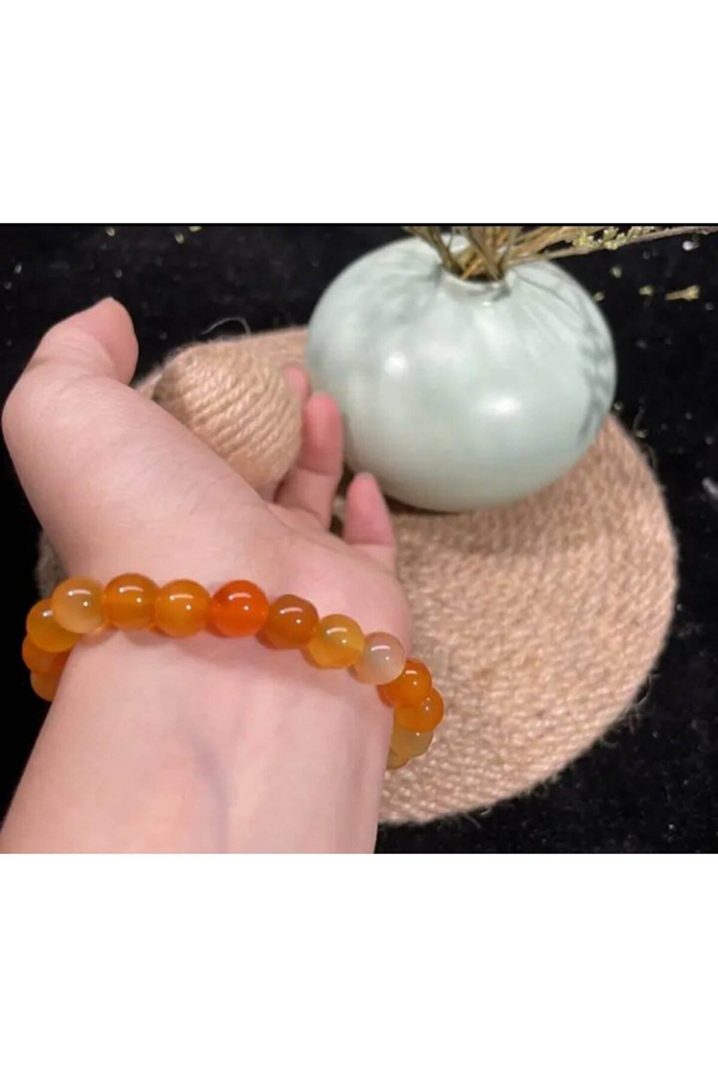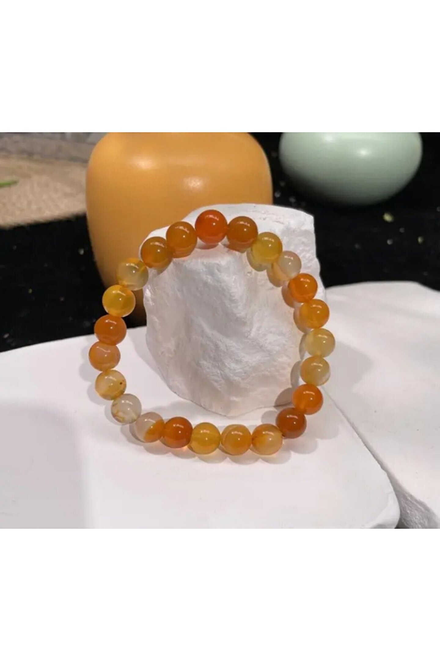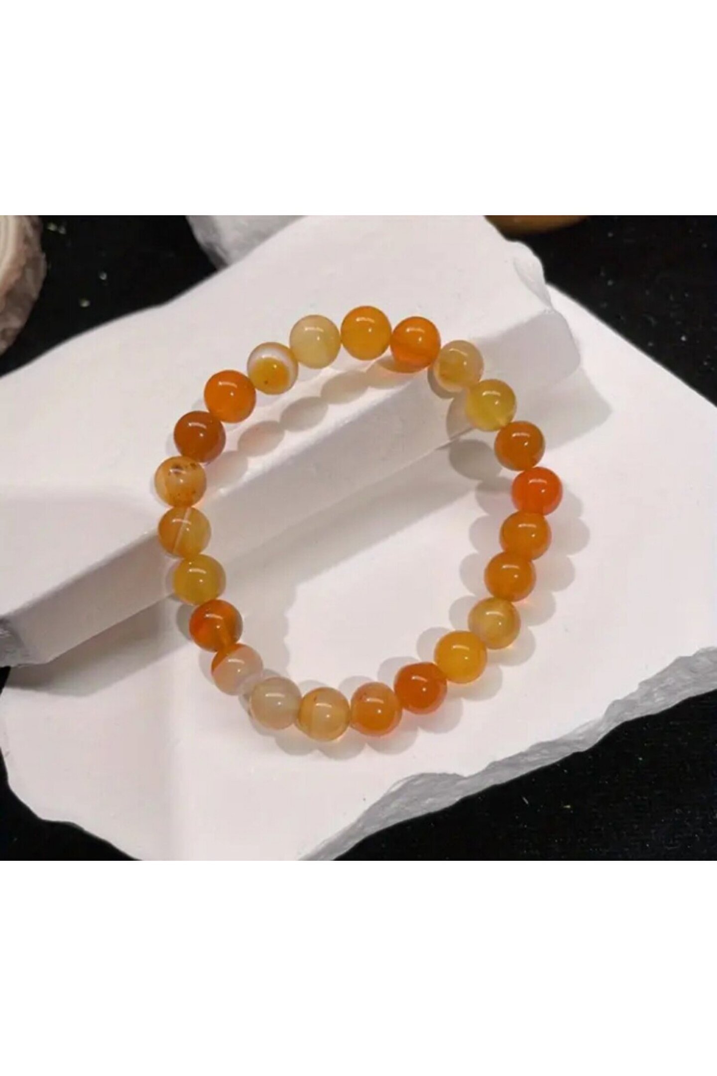EL YAPIMI Manevi&Şifalı Bal Akik 100%100 doğal taş - 6 mm Şifa ve Bereket Taşı -elastik ipli bileklik