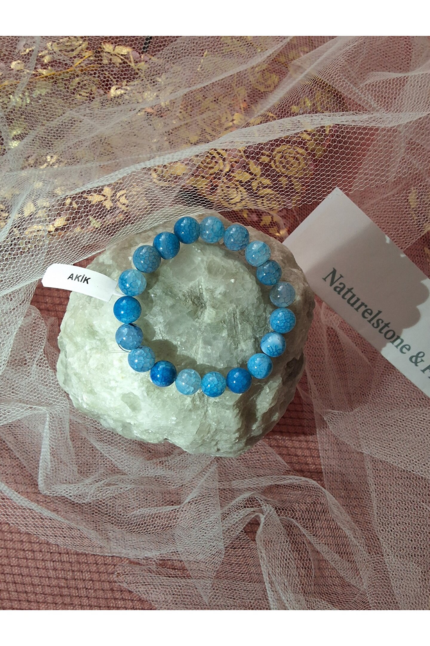 Doğal mavi akik taşları ile el işçiliğiRuhsal denge, sakinlik ve stres azaltmaya destek olurŞık ve unisex tasarım: günlük, ofis veya özel günlerde kullanıma uygunEsnek misina yapısı sayesinde bileğe kolayca uyum sağlar
