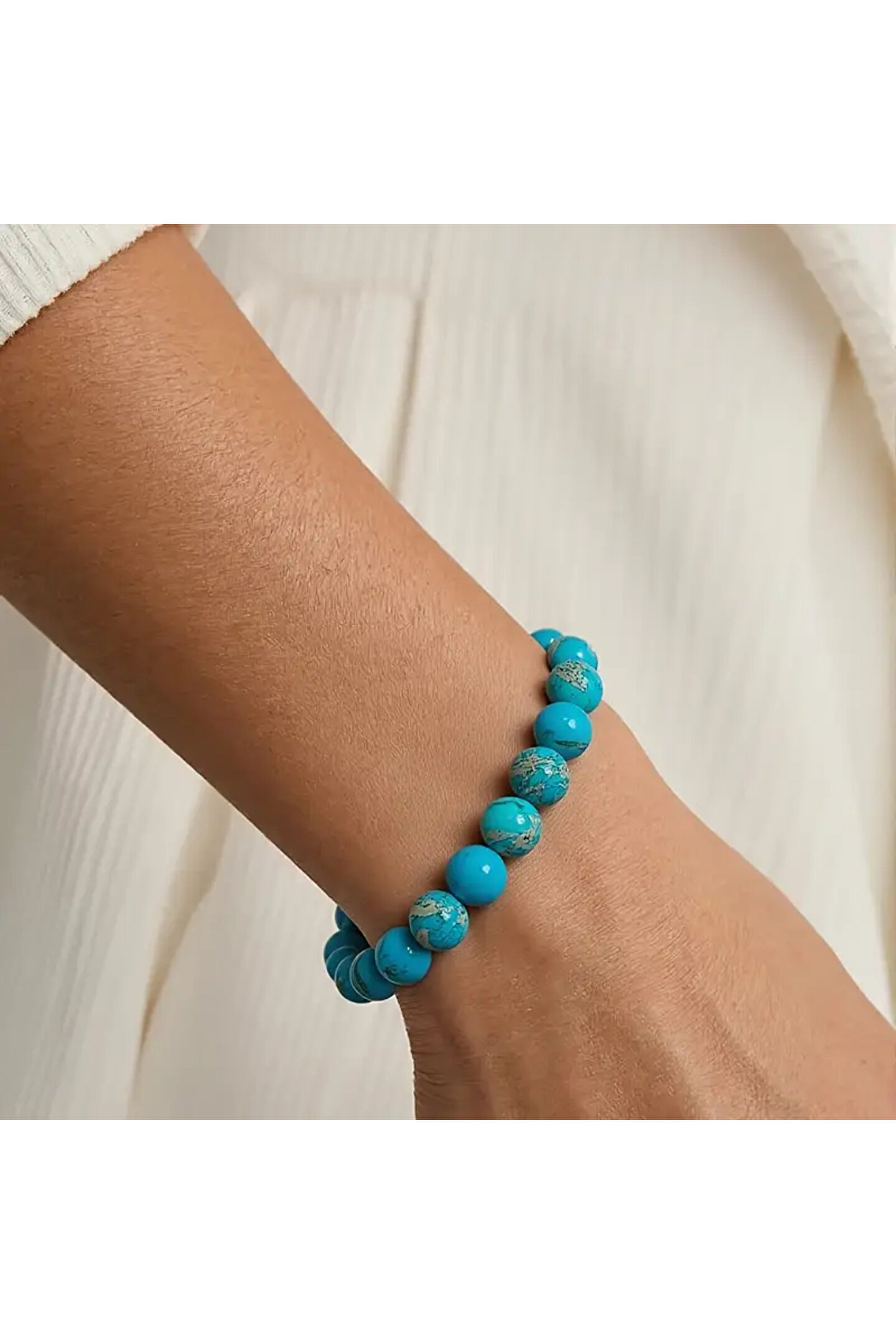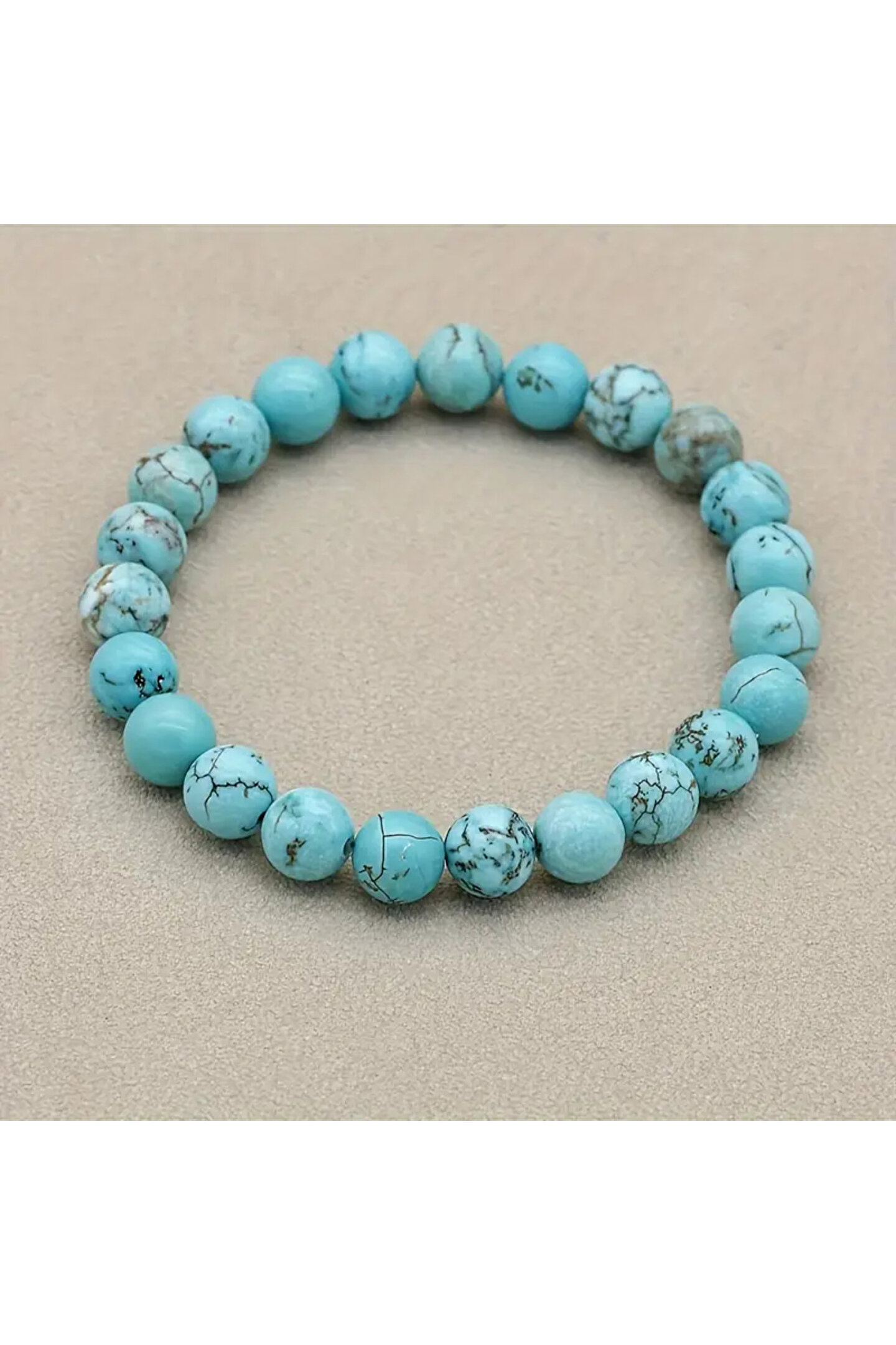 Siyah Damarlı Turkuaz Doğal Taş Bileklik – 8 mm