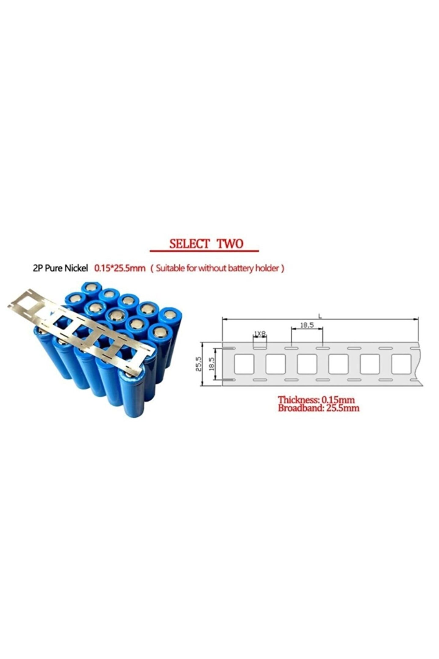 1 metre; 18650 punto 2p nikel şerit 0; 15; 25 5; 18; 5mm 1m Ölçü:0; 15; 25 5; 18; 5mm Kolay lehim tutar; Pil tutucusuz bataryalar için tasarlanmış ölçülendirilmiştir;