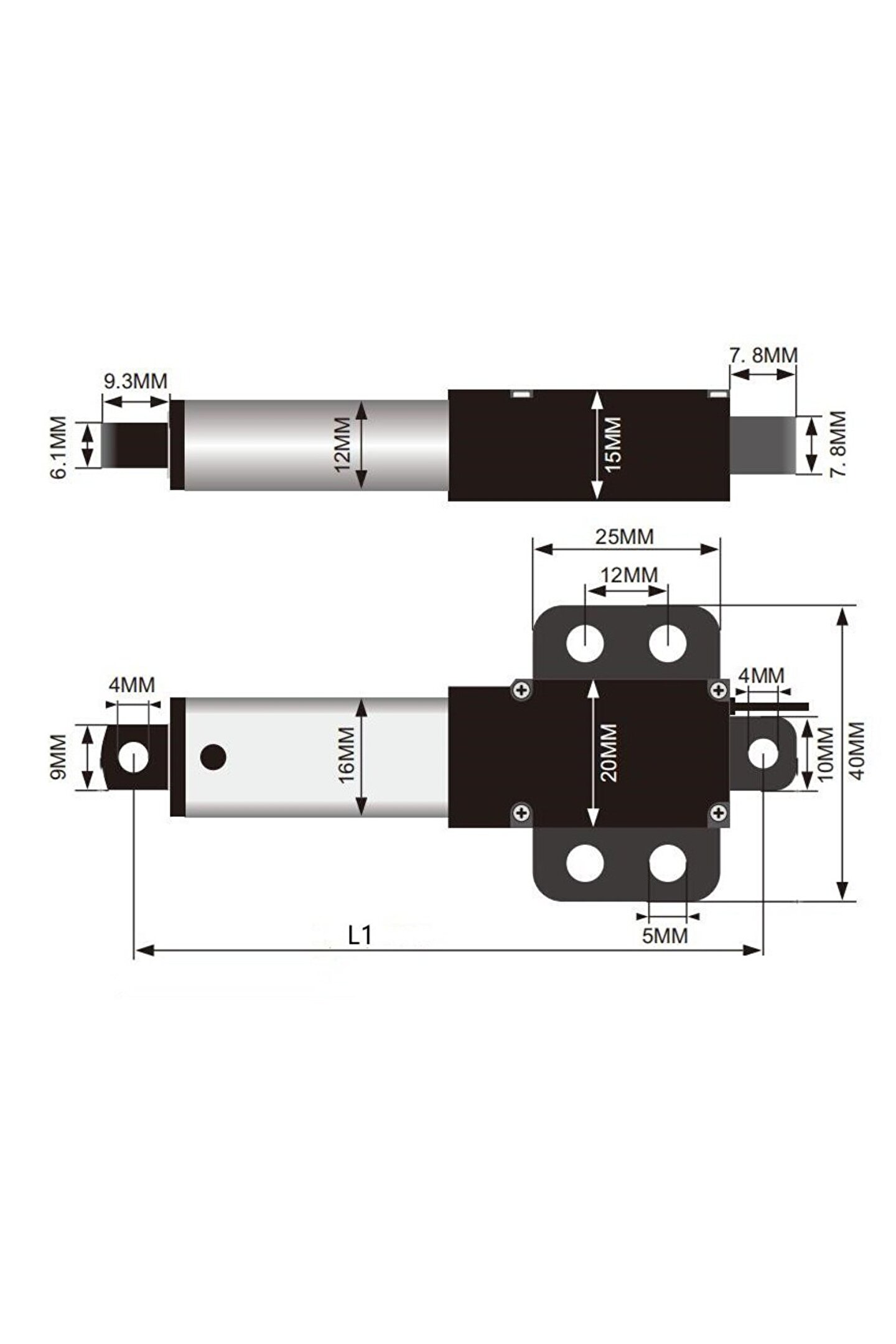12V 30mm Mikro Lineer Aktüatör - 50mm/s Yüksek Hız, 19.2N İtme Gücü