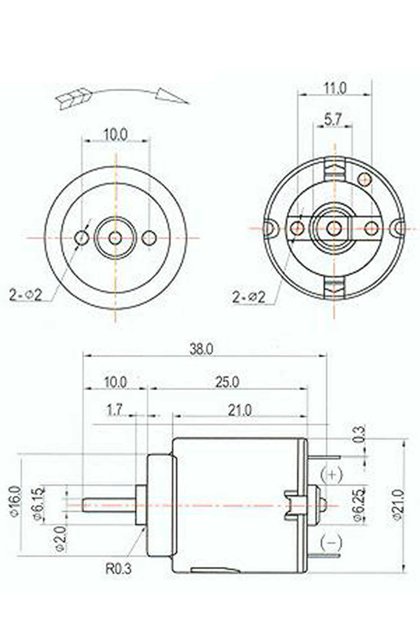 Arduino R140 Micro 1; 5V; 6 V Motor DC Motor Oyuncak 2mm Şaft Uzunluk: 25mm Çap: 21mm Şaft Çapı: 2mm Eksen Uzunluğu: 8mm Voltaj: 1; 5; 6V Dönme Hızı: 5000; 20000RPM Montaj Deliği Mesafesi: 10mm;