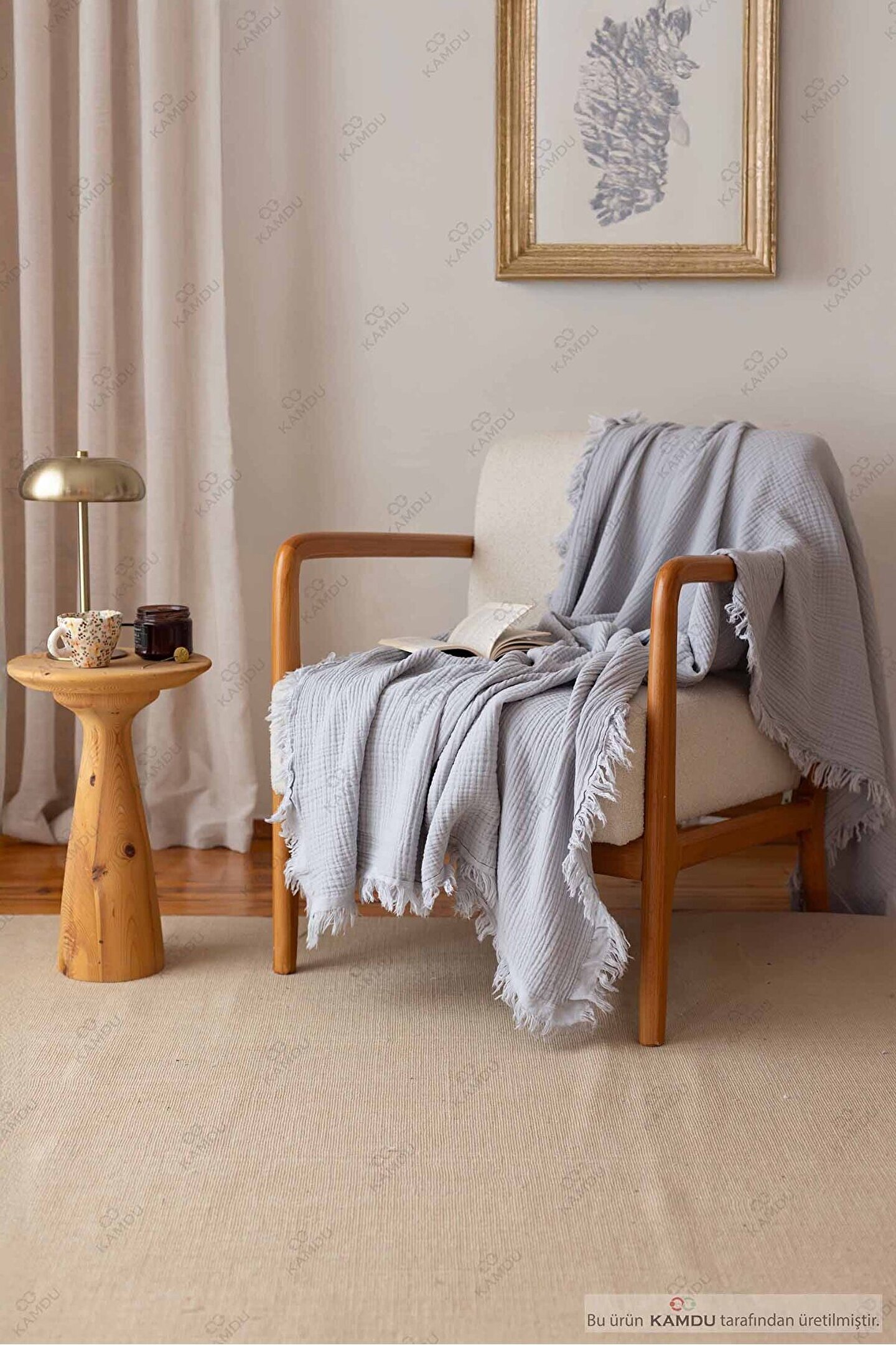 - %100 pamuk materyalden üretilmiş olup, doğal ve yumuşak dokusuyla cildinize nazik bir dokunuş sağlar.; - Hava geçirgen yapısı sayesinde mevsim ne olursa olsun ideal sıcaklıkta tutar ve rahat bir kullanım sunar.; - 100x200 cm boyutlarındaki geniş tasarımı ile hem tv battaniyesi olarak kullanılabilir, hem de çok amaçlı bir örtü olarak evinizdeki her köşeye uyum sağlar.; - 1-2 kg ağırlığındaki hafifliğiyle taşıması kolaydır; istediğiniz yerde serin veya sıcak tutmak için pratik bir çözüm sunar.; - Düz deseniyle sade ve şık bir görünüm sergilerken, her türlü dekorasyonla uyum içinde olur.; - 30 derecede makinede yıkanabilme özelliği ile temizliği kolaydır; hijyenik kalmasını sağlamak için pratik bir yöntemdir.; - Müslin pamuklu kumaşı sayesinde dayanıklılık ve uzun süreli kullanım vaad eder.