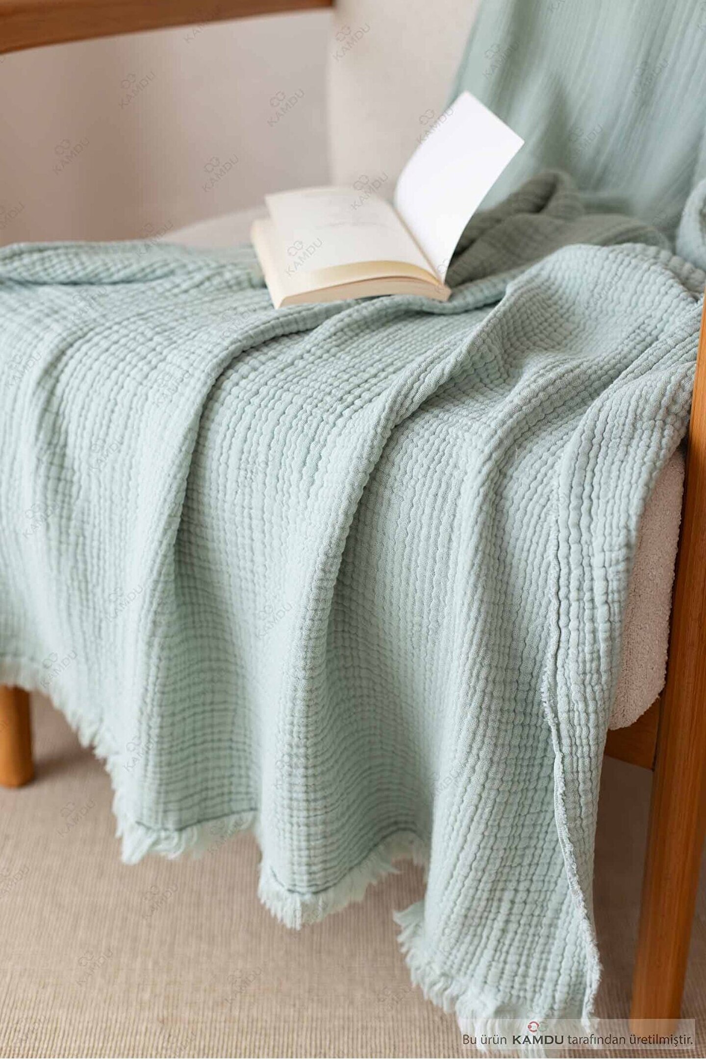 - %100 pamuk materyalden üretilmiş olup, doğal ve yumuşak dokusuyla cildinize nazik bir dokunuş sağlar.; - Hava geçirgen yapısı sayesinde mevsim ne olursa olsun ideal sıcaklıkta tutar ve rahat bir kullanım sunar.; - 100x200 cm boyutlarındaki geniş tasarımı ile hem tv battaniyesi olarak kullanılabilir, hem de çok amaçlı bir örtü olarak evinizdeki her köşeye uyum sağlar.; - 1-2 kg ağırlığındaki hafifliğiyle taşıması kolaydır; istediğiniz yerde serin veya sıcak tutmak için pratik bir çözüm sunar.; - Düz deseniyle sade ve şık bir görünüm sergilerken, her türlü dekorasyonla uyum içinde olur.; - 30 derecede makinede yıkanabilme özelliği ile temizliği kolaydır; hijyenik kalmasını sağlamak için pratik bir yöntemdir.; - Müslin pamuklu kumaşı sayesinde dayanıklılık ve uzun süreli kullanım vaad eder.
