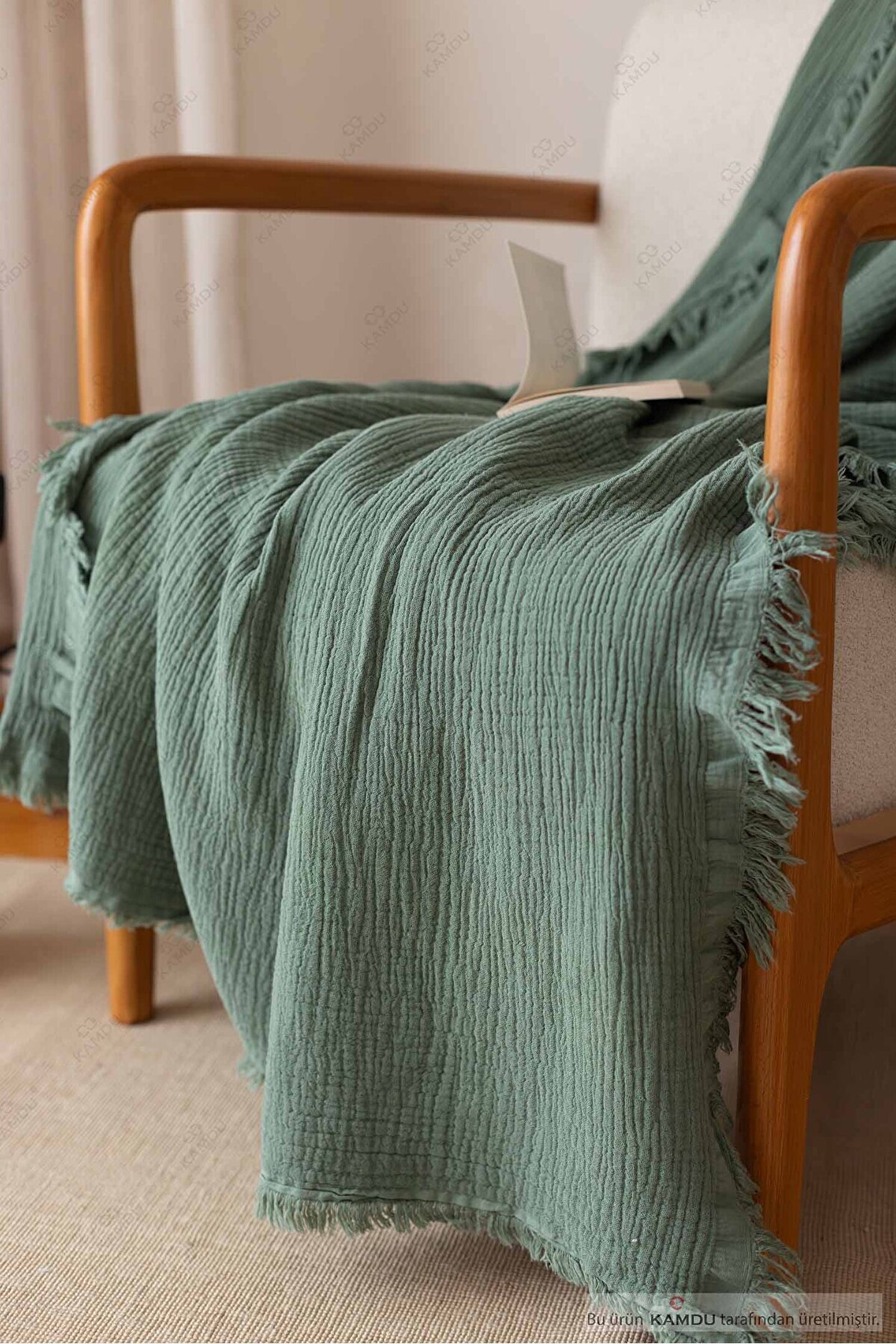 - %100 pamuk materyalden üretilmiş olup, doğal ve yumuşak dokusuyla cildinize nazik bir dokunuş sağlar.; - Hava geçirgen yapısı sayesinde mevsim ne olursa olsun ideal sıcaklıkta tutar ve rahat bir kullanım sunar.; - 100x200 cm boyutlarındaki geniş tasarımı ile hem tv battaniyesi olarak kullanılabilir, hem de çok amaçlı bir örtü olarak evinizdeki her köşeye uyum sağlar.; - 1-2 kg ağırlığındaki hafifliğiyle taşıması kolaydır; istediğiniz yerde serin veya sıcak tutmak için pratik bir çözüm sunar.; - Düz deseniyle sade ve şık bir görünüm sergilerken, her türlü dekorasyonla uyum içinde olur.; - 30 derecede makinede yıkanabilme özelliği ile temizliği kolaydır; hijyenik kalmasını sağlamak için pratik bir yöntemdir.; - Müslin pamuklu kumaşı sayesinde dayanıklılık ve uzun süreli kullanım vaad eder.