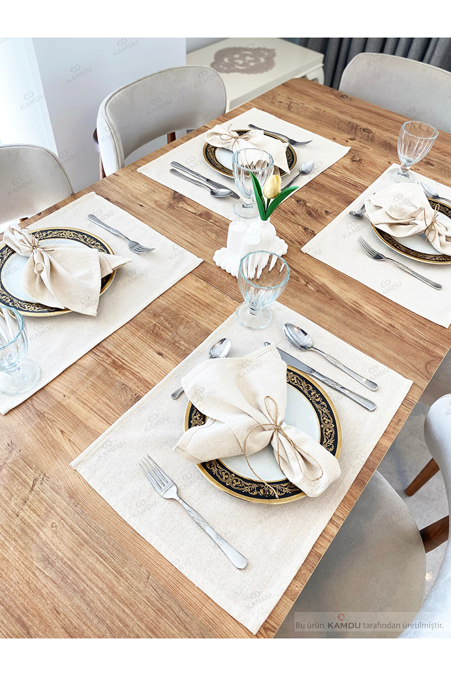 35x50cm 4 Adet Pamuklu %100 Keten Amerikan Supla,Şık Sunum Peçetesi, Keten Amerikan Servis