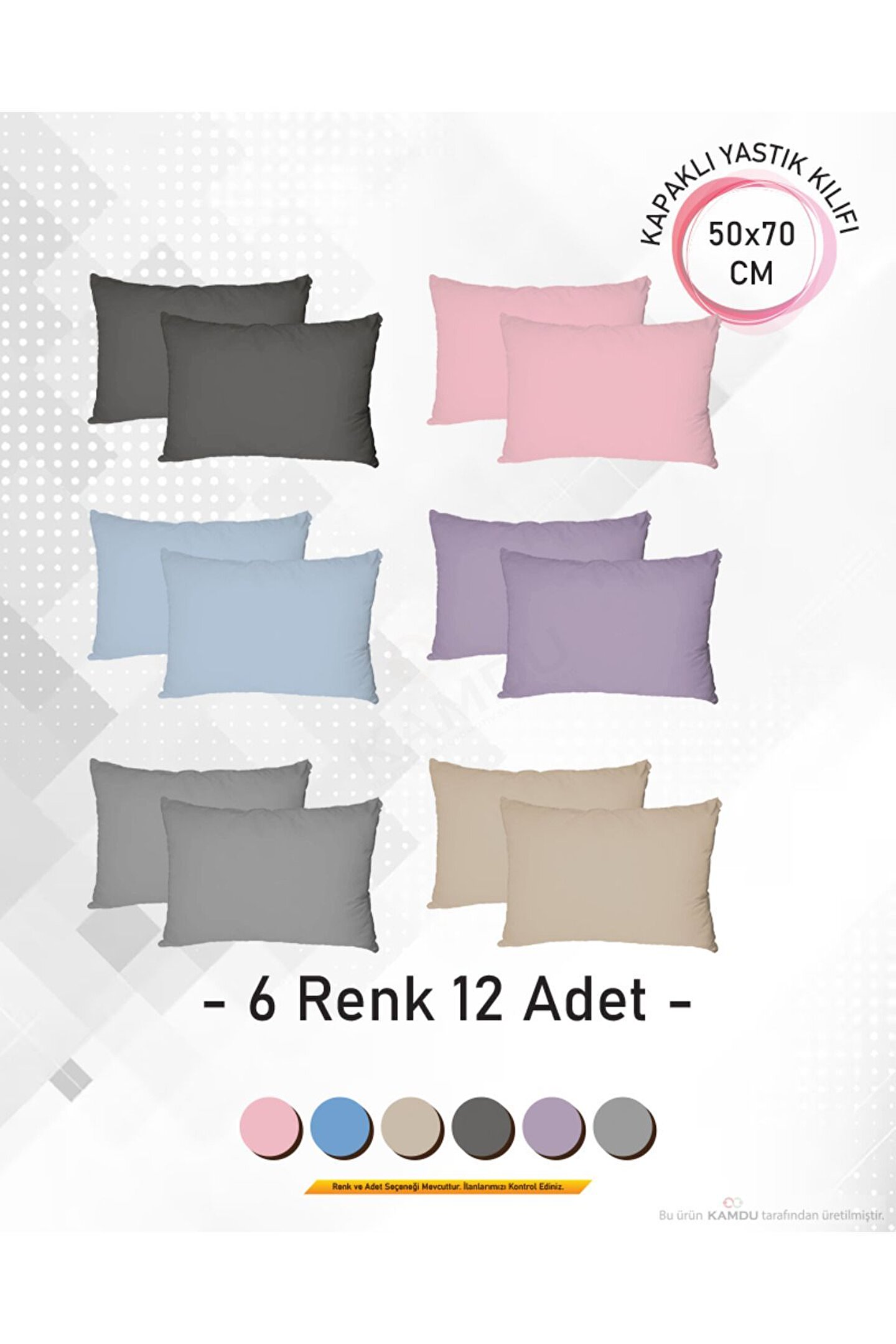 12li Set Renkli 50x70 Kapaklı Ranforce Premium Yastık Kılıfı